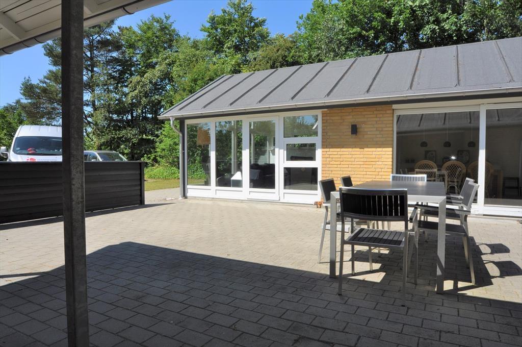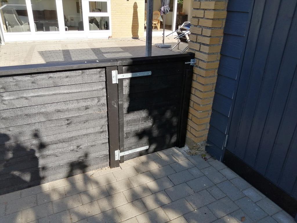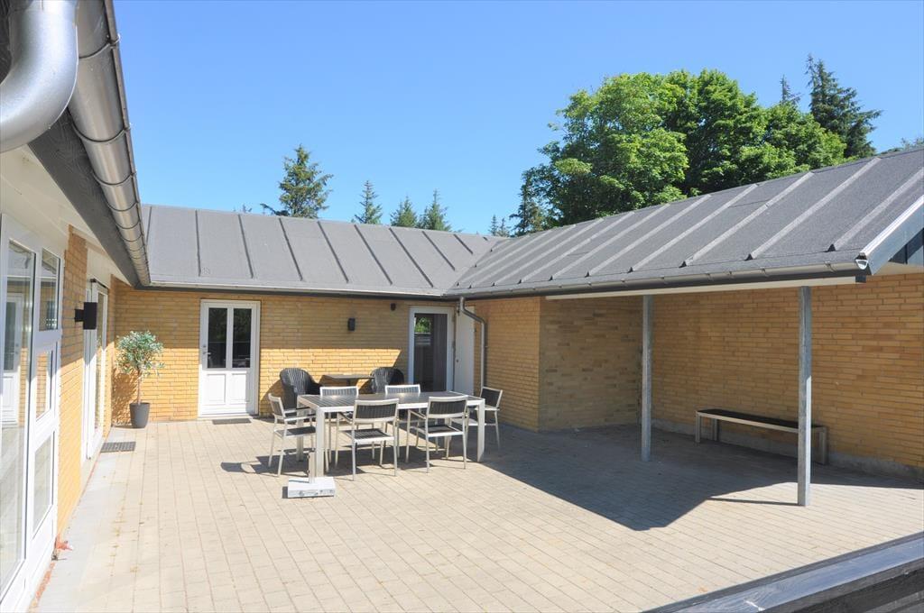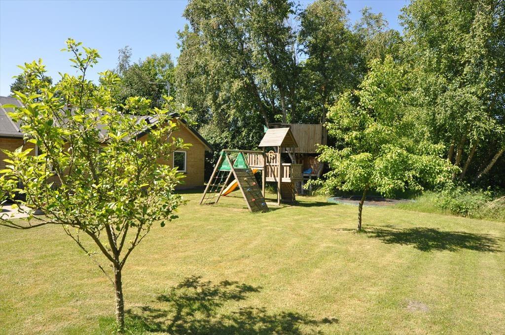 Benyt en af de tre udgange til den skønne sydvendte gårdhave, her kan I sidde i læ og nyde de dejlige solstråler i ro og mag, så nyd solens varme i mange timer, og den friske Vesterhavsluft der hersker over området. På grunden finder I også både legetårn, sandkasse og legehus, så der er masser at lave for ungerne imens I nyder en god kop kaffe, imens hunden ligger under bordet og slapper af. Sæt jer på den skønne nordvendte terrasse, her kan I nyde den skønne natur med udsigt til marker og træer og imellem træerne kan fjorden skimtes.