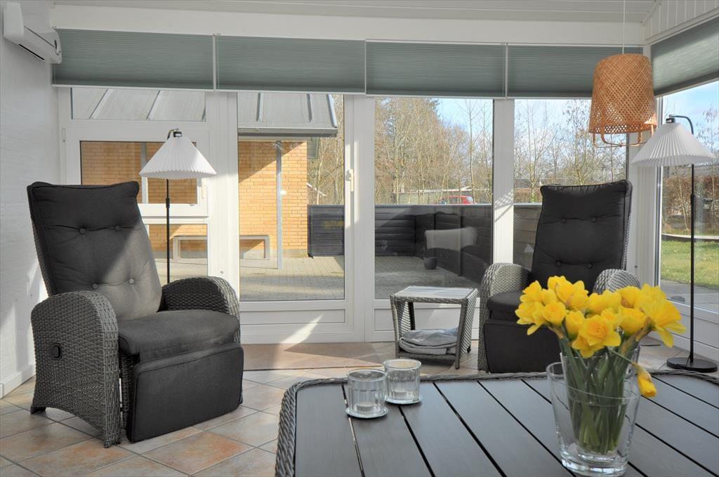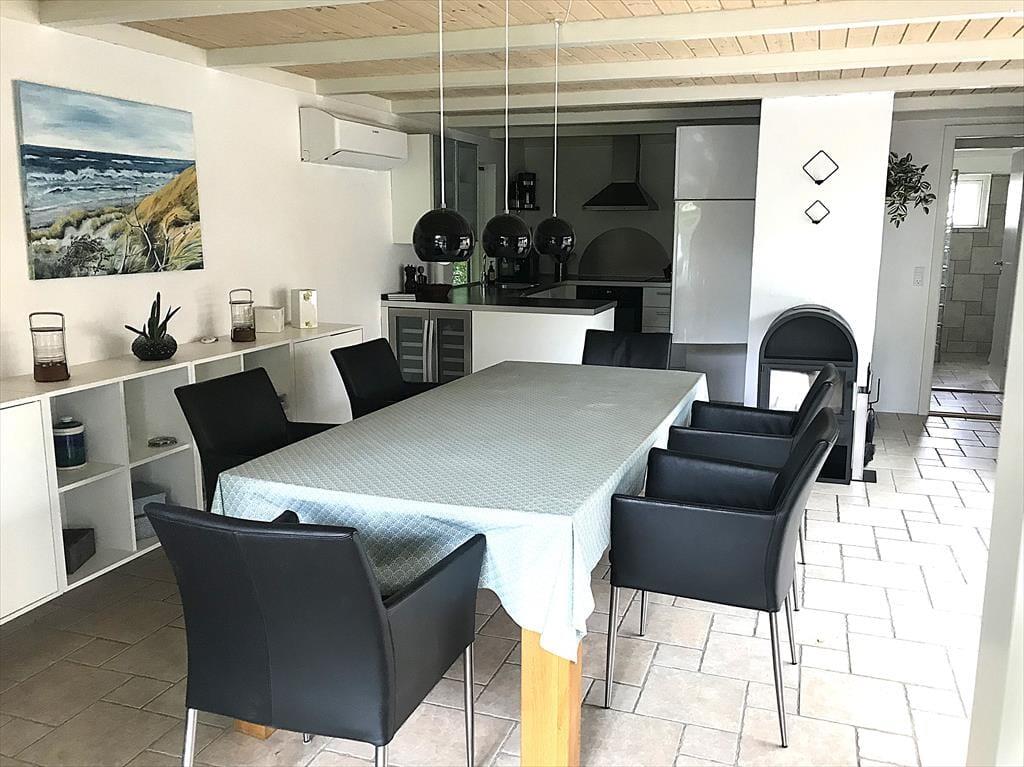 Store vinduer og et smukt lysindfald skaber en helt fantastisk stemning i dette skønne feriehus, her kan I trække stikket og komme helt ned i gear. Lav mad i det smukke og godt udstyrede køkken, her har I god plads til madlavning for hele familien, så tag ungerne med I køkkenet og lav et lækkert sommerligt måltid. Tænd op for den skønne brændeovn og nyd dens varme og hyggelige knitrende lyd der spreder sig i hele huset. Sæt jer ud i den skønne stue/udestue hvor der kommer en masse lys og varme ind. Dette dejlige feriehus kalder på mange hyggelige stunder sammen med familien. Hvis I er ankommet i elbil, så er der ved huset en ladestander til elbil, så lad bilen lade op og tag på eventyr i det skønne område.
