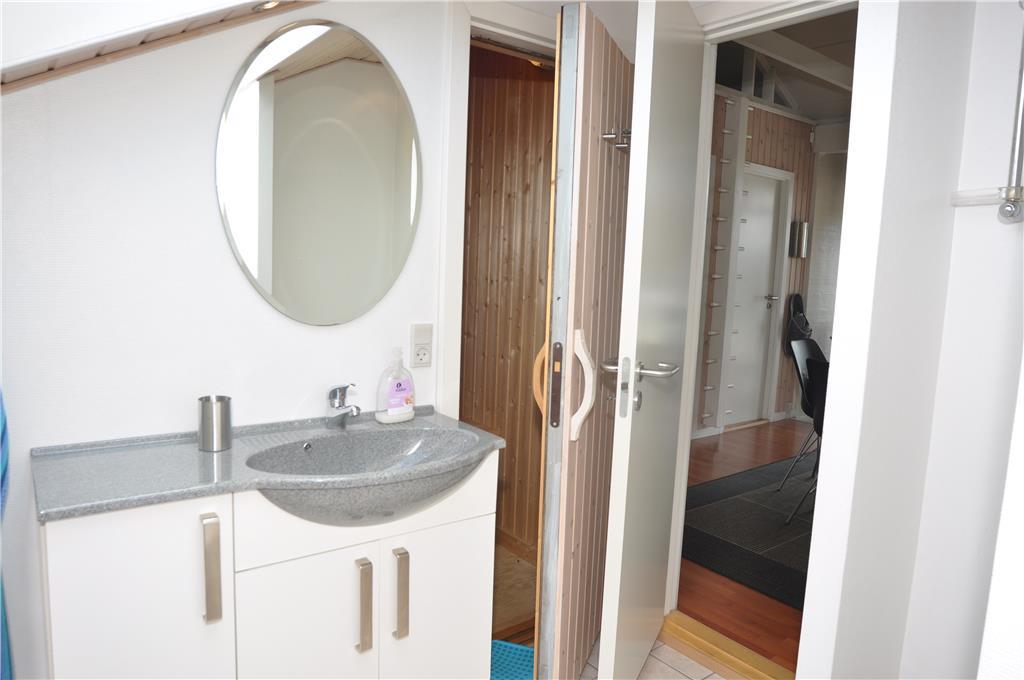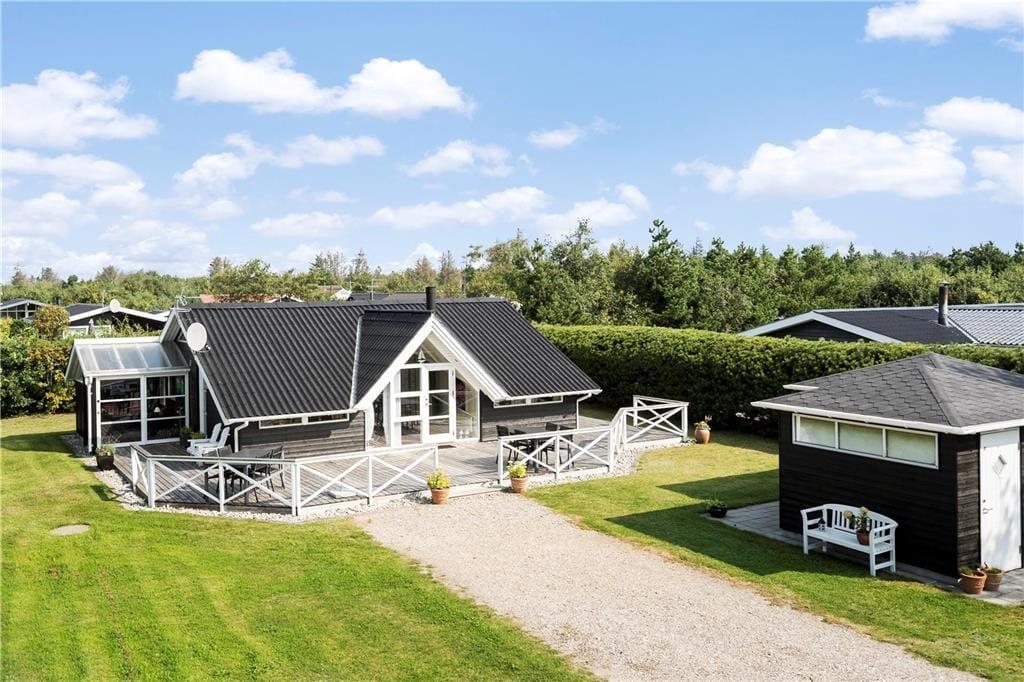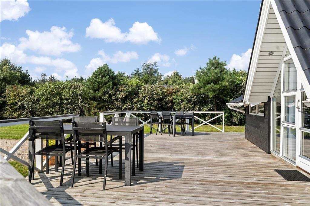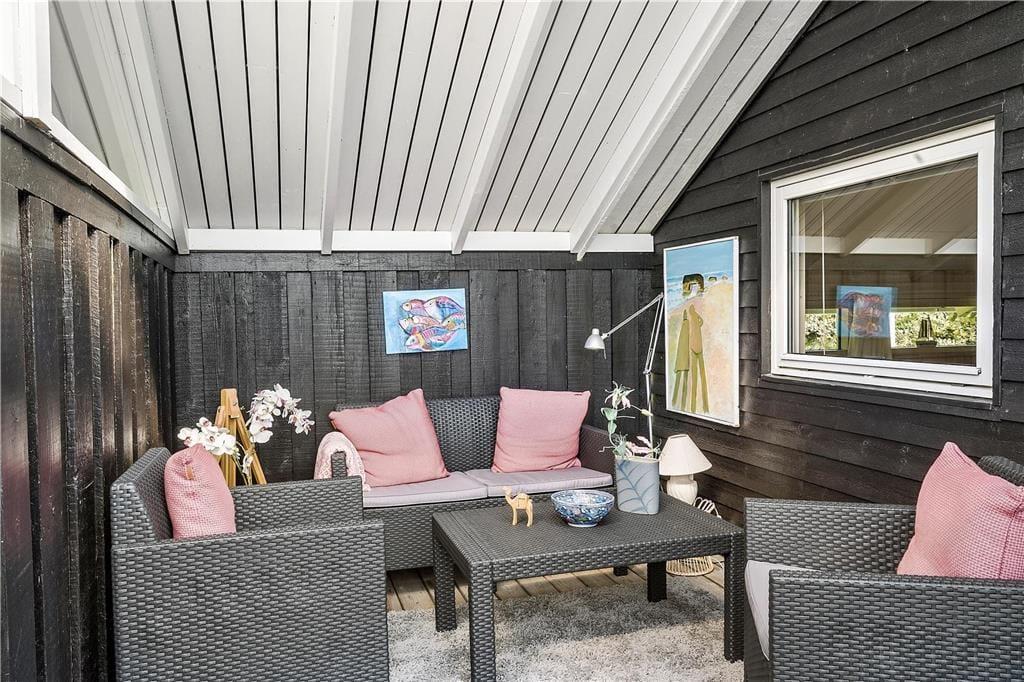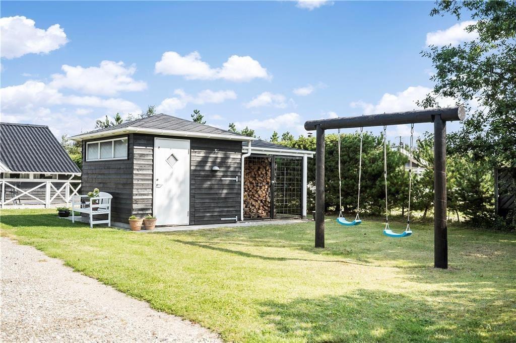 Rundt om det meste af huset er der anlagt træterrasse, så I vil altid kunne finde et solrigt hjørne med læ i det dejlige sommervejr. Skulle det en dag ske at regne lidt, er det heldigt at I på den sydvestvendte side af huset finder en udestue/atelier, her kan I sætte jer godt til rette med en god bog eller strikketøjet og nyde freden og roen i området, imens I nyder lyden af regnen der trommer på taget. Når solen har gjort sit indtog igen, kan I tage aftensmaden med udenfor og smide bøfferne på grillen, imens I nyder den dejlige sols varme og den friske duft af nyfalden regn. Til familiens yngste er der både gynger og sandkasse.