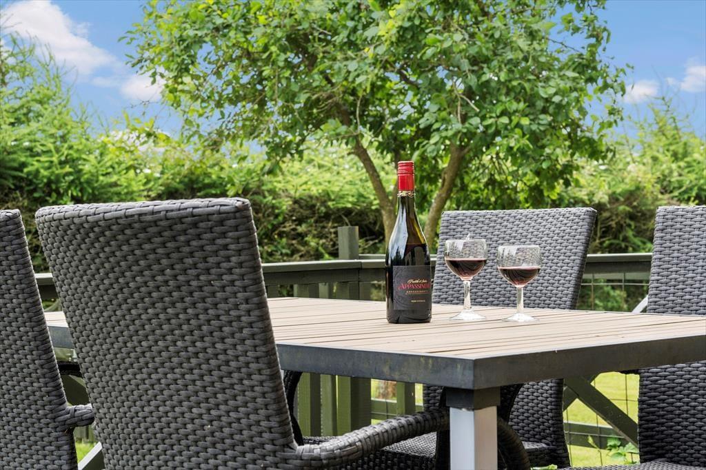 På de varme sommerdage hvor solen står højt på himlen kan den grønne græsplæne virke lokkende for de fleste, så tag fodbolden under armen og nyd en hyggelig familiær fodboldkamp, inden I smider jer på den dejlige terrasse med de skønne havemøbler. På terrassen kan I nyde et lækkert aftensmåltid imens fuglene synger, ungerne og hundene leger rundt på græsset, og da den store grund er indhegnet, kan I lade dem lege frit uden at bekymre jer om, om de får udforsket lidt for meget på egen hånd. På grunden er der store træer som giver gode skygge steder i det varme sommervejr.