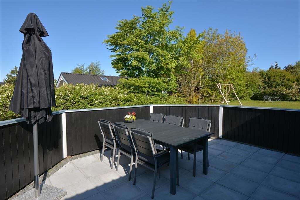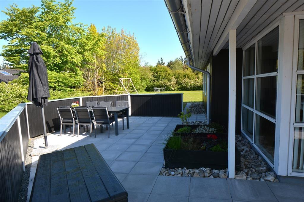 Den dejlige og ugenerede grund giver jer rig mulighed for at nyde den friske luft og den dejlige sol, på grunden er der god plads til både leg, boldspil og privatliv, og der er da også opsat gyngestativ til familiens yngste, som de kan have stor glæde af. Sæt jer på den skønne østvendte terrasse og nyd dagens første kop kaffe, imens kan I beundre den smukke solopgang og fuglene der starter deres hyggelige kvidren. Når sulten begynder at melde sin ankomst, kan I tage aftensmaden med udenfor og lave den på grillen imens I nyder den dejlige solnedgang i det fjerne, der giver himlen et fortryllende skær.