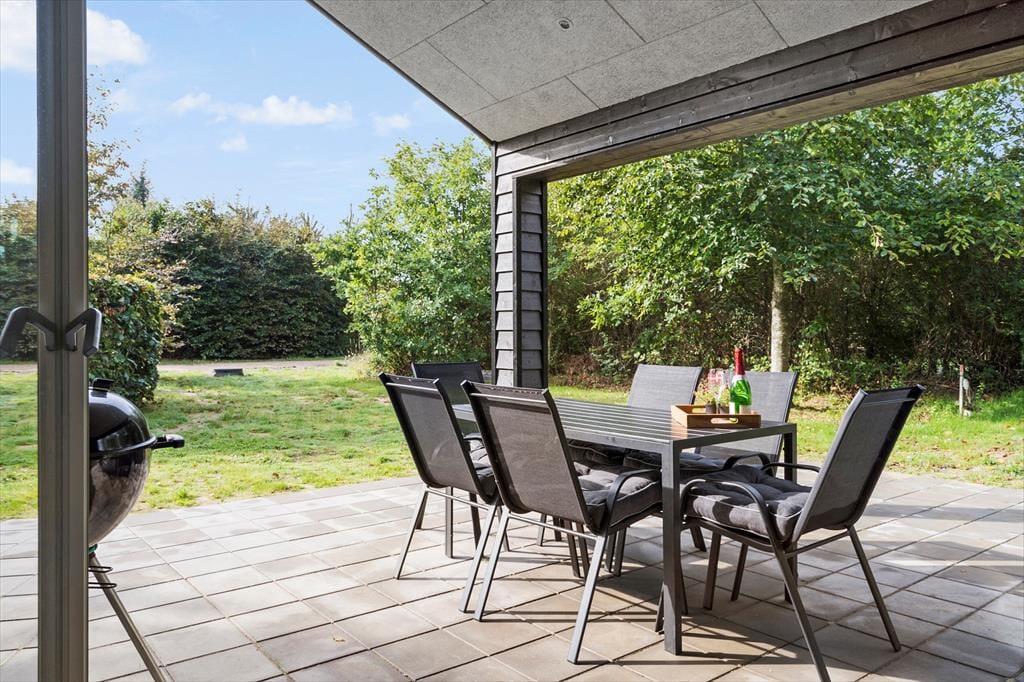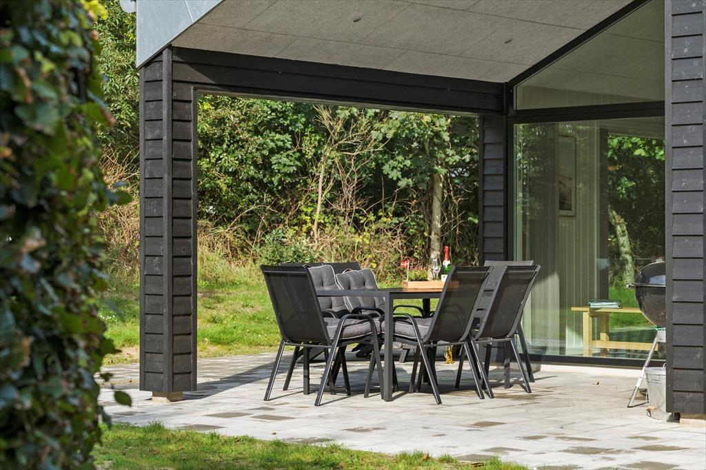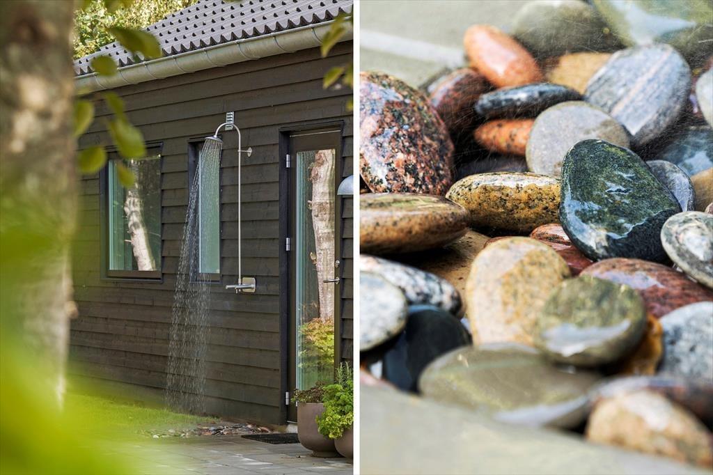 Når I ankommer, vil I med det samme få følelsen af fred og idyl, idet de høje træer og buske vil skærme jer, så I kan nyde morgenkaffen på en af de 2 terrasser, slikke sol på solstolene i haven og nyde feriemaden fra grillen i hyggeligt samvær. Efter et dyp i den nærliggende skønne fjord, i det salte brusende Vesterhav eller en eftermiddag i solens varme, er det jo en nydelse at få skyllet af kroppen under den udendørs bruser, nyde en dejlig kop kaffe eller noget koldt til ganen inden tiden for at udforske de lokale oplevelser går i gang.