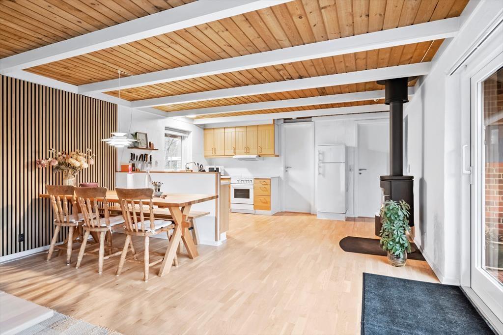 Hyggeligt sommerhus i Nørhede Vest med brændeovn, internet og kun 230 m til stranden.