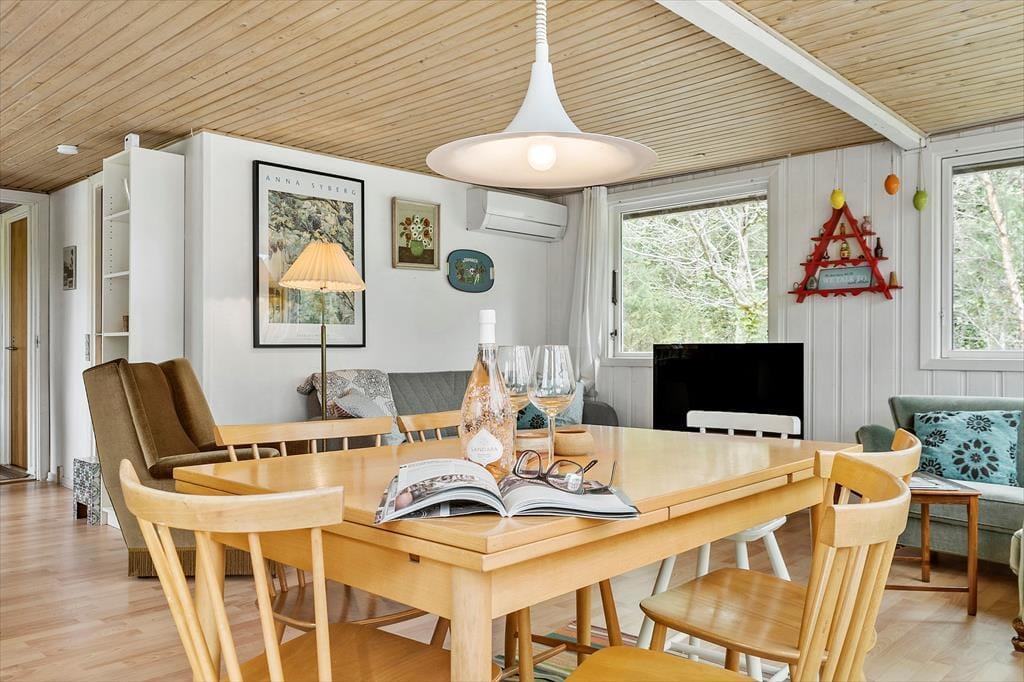 Når I træder ind i sommerhuset, træder I også ind i et rum fyldt med ro og nærvær. Her handler det om at sætte farten ned og bare være sammen. Huset byder på en varm og indbydende atmosfære, hvor I straks vil føle jer hjemme. I stuen er der god plads til hyggelige stunder foran brændeovnen med familien eller vennerne. Find brætspillene frem, grin sammen, og lad tiden flyde stille afsted. Eller smid benene op på sofaen med en god bog eller en kop kaffe.