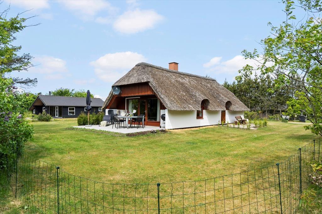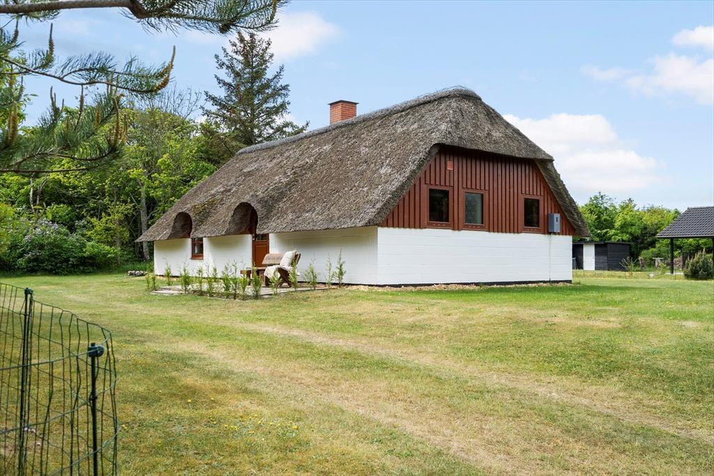 Når I træder ind i dette charmerende sommerhus med klassisk stråtag, mødes I af en rolig og hjemlig stemning, der inviterer til afslapning fra første øjeblik. Det naturlige, de bløde farver og det lyse interiør skaber ægte sommerhusidyl – her er det nemt at koble helt fra og lade hverdagen blive hjemme.
