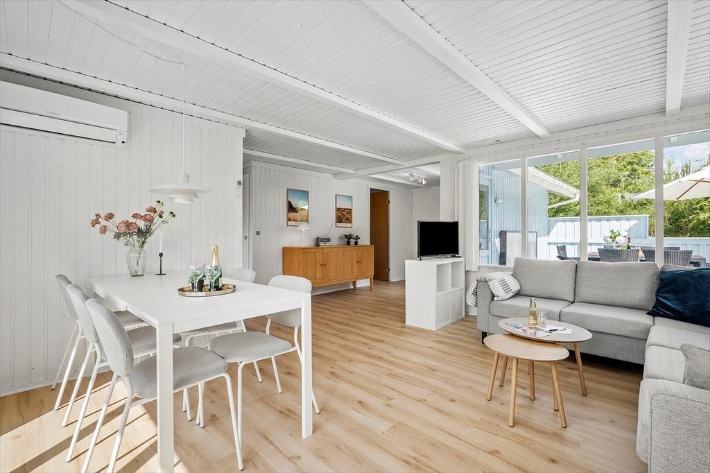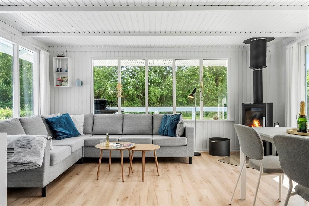 Der er noget helt særligt ved at træde ind i dette charmerende, lyseblå sommerhus – som om freden sænker sig med det samme. Her bliver I mødt af ægte sommerhusstemning, ro og en hjemlig atmosfære, der indbyder til afslapning fra første øjeblik. Huset er hyggeligt indrettet med plads til både fælles stunder og stille øjeblikke – og selvfølgelig er jeres firbenede ven også mere end velkommen her. I stuen kan I samle jer omkring brætspil, gode samtaler eller bare nyde stilheden, mens brændeovnen spreder varme og hygge. Det er det perfekte sted at lande efter en dag i naturen – måske med en kop te og et tæppe, mens hunden sover trygt ved jeres fødder. Køkkenet ligger adskilt fra stuen, så der er god ro til både madlavning og hyggesnak – og det er nemt at finde plads til fællesskab i jeres eget tempo.