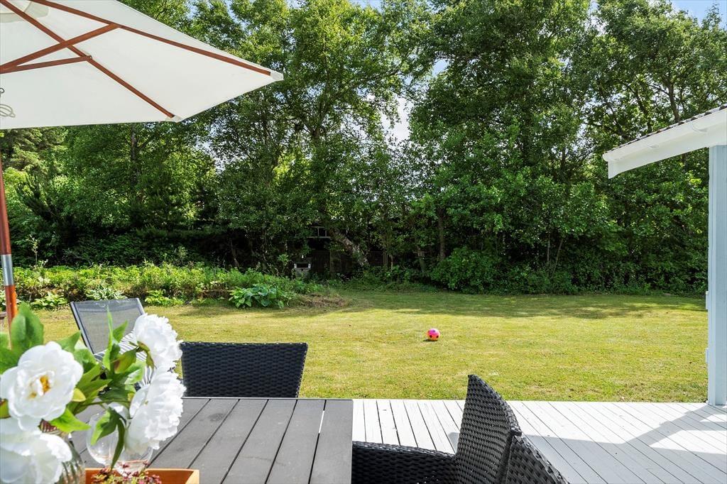 Terrassen er en af husets store styrker – her er både sol, skygge og altid et læhjørne, hvor I kan finde fred og nyde dagens måltider eller bare lade tiden gå. Uanset om solen skinner, eller I bare har lyst til at være ude, er det et sted, I får lyst til at opholde jer længe. Haven er stor og har masser af plads til både boldspil, leg og afslapning. En del af grunden er indhegnet, så I trygt kan tage hunden med ud – uden snor og uden bekymringer. Her kan børnene løbe frit omkring, hunden snuse nysgerrigt rundt, og I selv nyde en stille stund i en liggestol. Det er udeliv, når det er bedst – enkelt, ægte og afslappende.