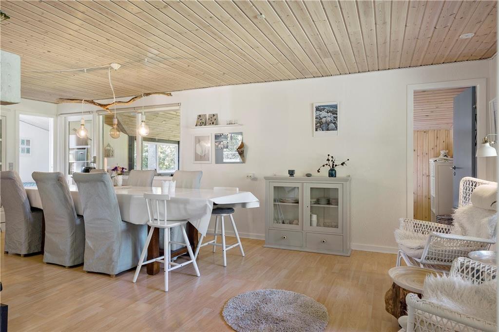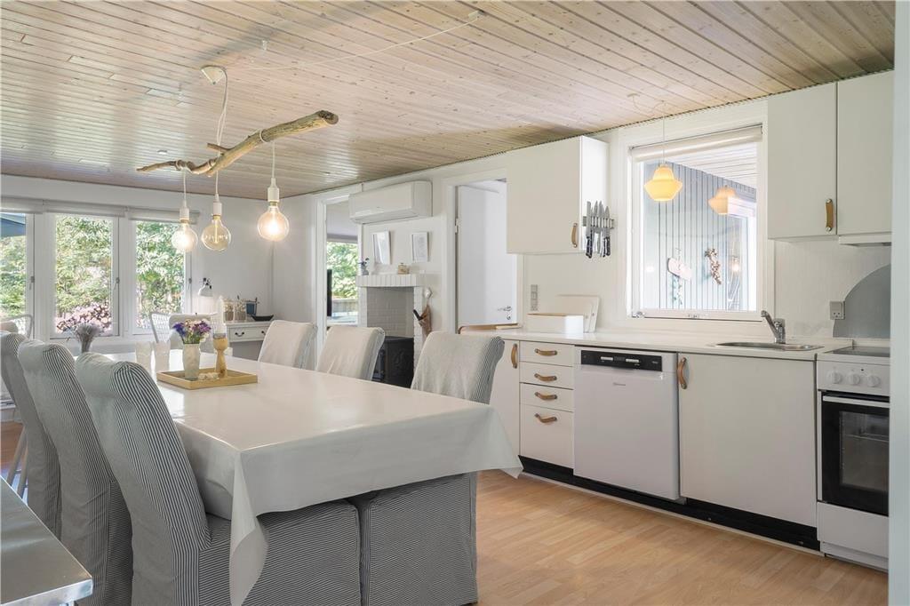 Når I træder ind, vil I hurtigt kunne mærke den sommerhusstemning, som strømmer igennem huset. Sæt gang i køkkengryderne, og nyd hvordan duften spreder sig ud i rummet, og nyd roen væk fra dagligdagens hurtige tempo. Træk jer ind i sofaen med en kop varm drik, og tag et spil med ind, og få gang i familiehyggen. Tænd op i brændeovnen når mørket falder på og kulden trækker sig indenfor, det giver en dejlig ro, og en god varme rundt i huset.