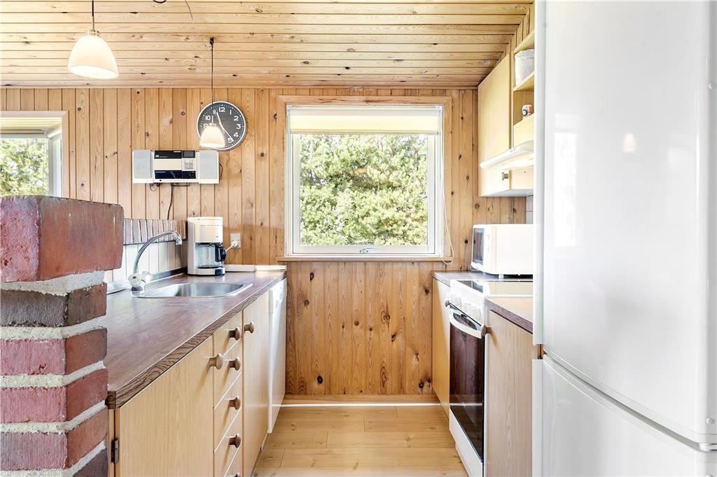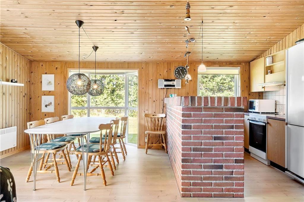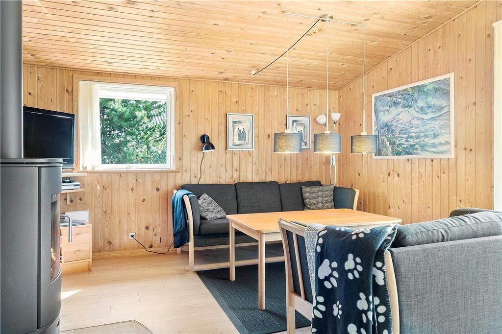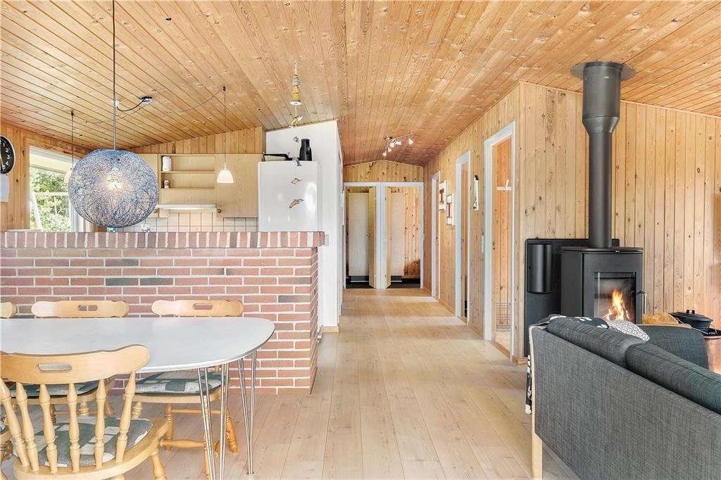 Skønt træferiehus som byder jer velkommen i det øjeblik i træder ind. Er I på madholdet kan I lave lækre måltider i køkkenet, og mærk hvordan varmen og duften af maden fordeler sig ud i det åbne køkkenalrum sammen med stuen. Sæt jer med et brætspil ved spisebordet, imens I venter på maden, bliver færdig. Når mørket falder på, kan I tænde op i brændeovnen og få gang de lange samtaler, og mærk hvordan varmen, og hyggen breder sig ud i feriehuset. Tag en tur i saunaen, og få hyggen og kroppen opvarmet.