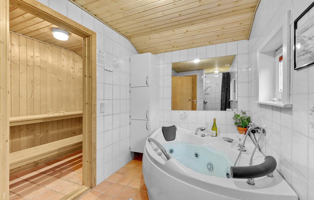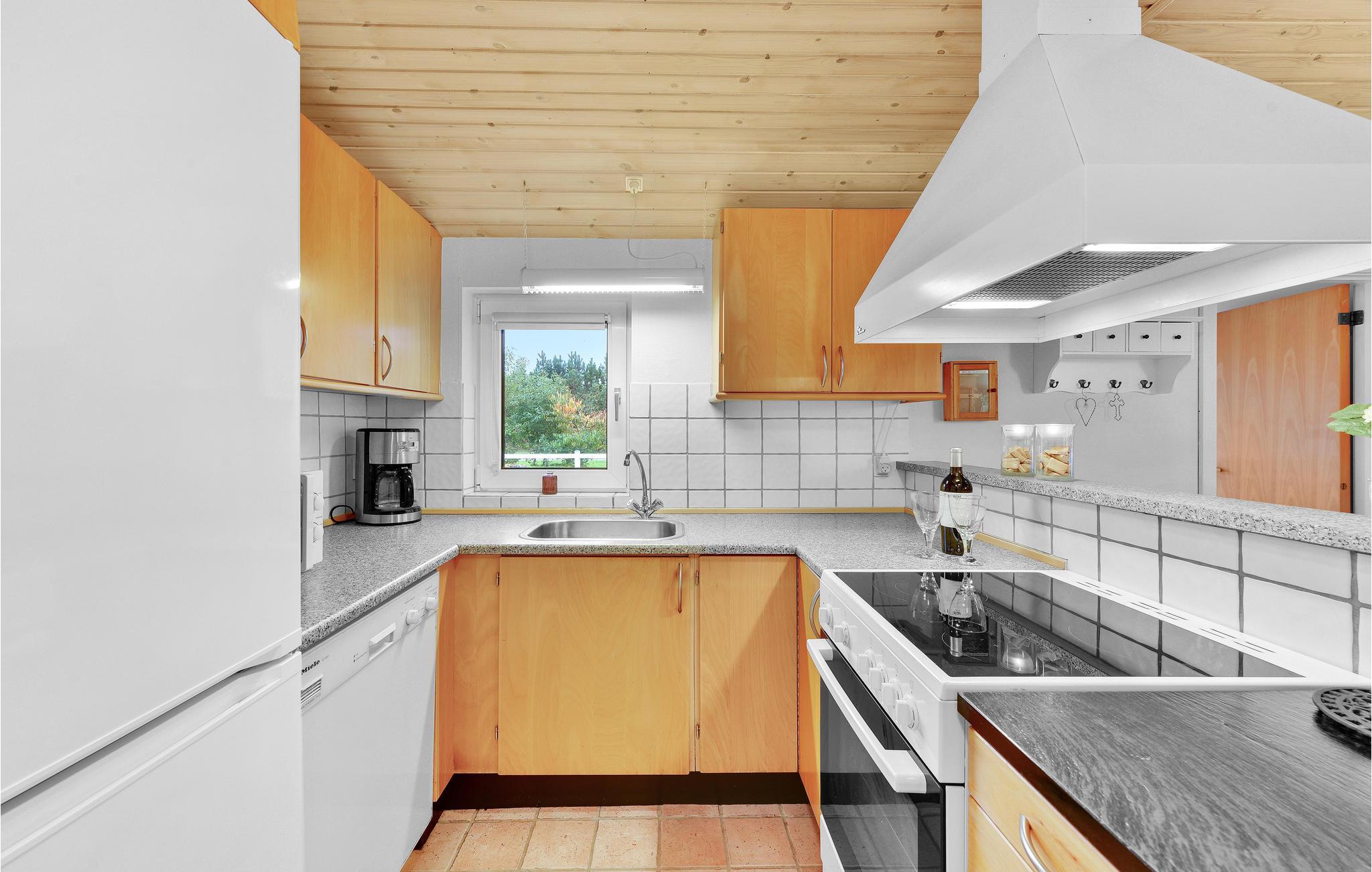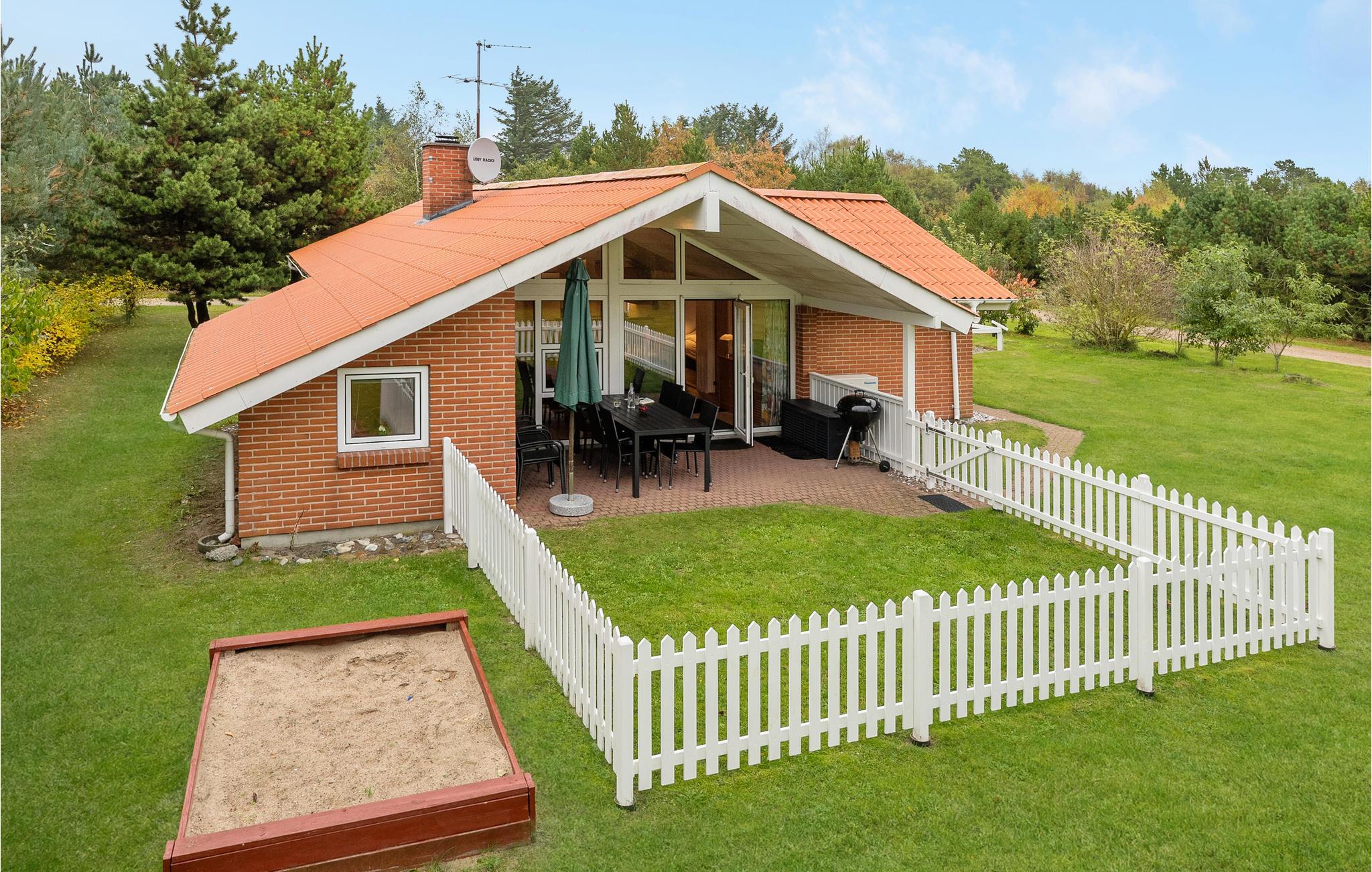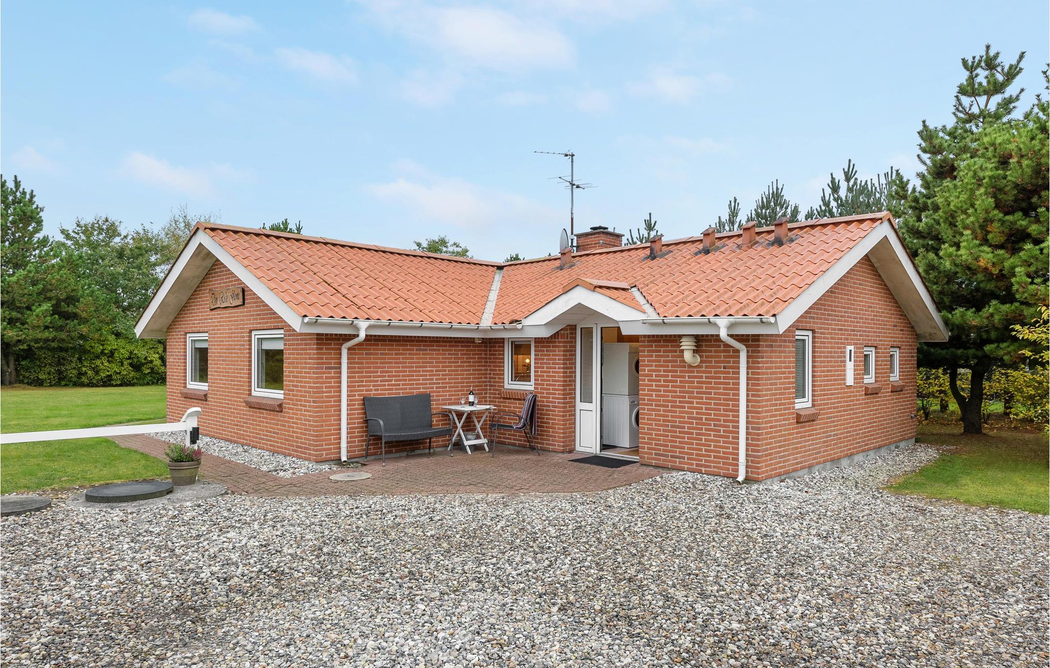 Huset ligger i et roligt sommerhusområde, på en grund med en stor græsplæne med rig mulighed for at børn og andre barnlige sjæle, kan få mange timer til at gå med boldspil og andet leg. I denne del af Vestjylland er der højt himlen og græsset må gerne betrædes. Feriehuset rummer, udover stort badeværelse med spa og sauna, også et gæstetoilet. Det nydelige køkken er udstyret med alle moderne hjælpemidler så I kan slappe af i ferien. Husets dejlige stue giver god mulighed for at fordybe sig i en bog, eller i en god film. Der er varmepumpe i huset som også kan fungere som aircondition til nedkøling på de varme sommerdage.