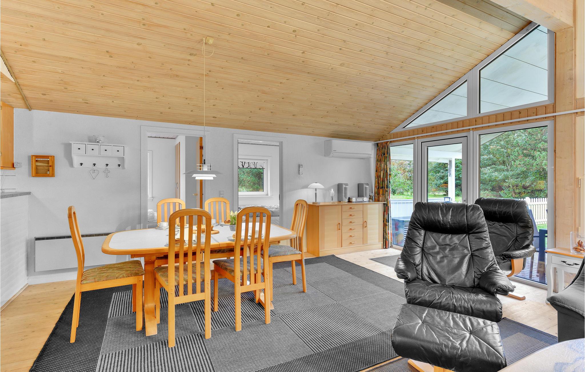 Husets store overdækkede terrasse er skøn, både til afslapning, men også til at spise dagens måltider på. Nyd en lur i de dejlige solvogne. Der er et skur ved huset som indeholder legesager og spil til børn, herunder kongespil.