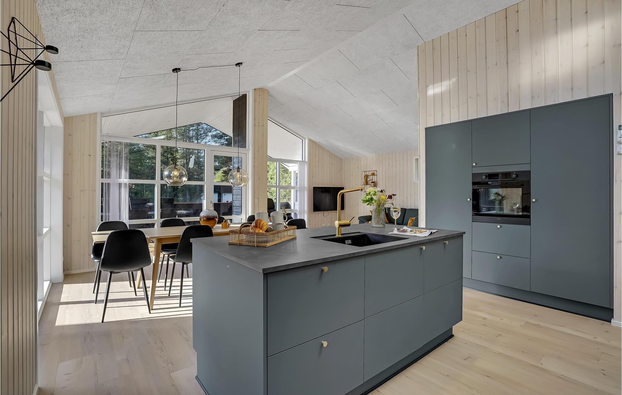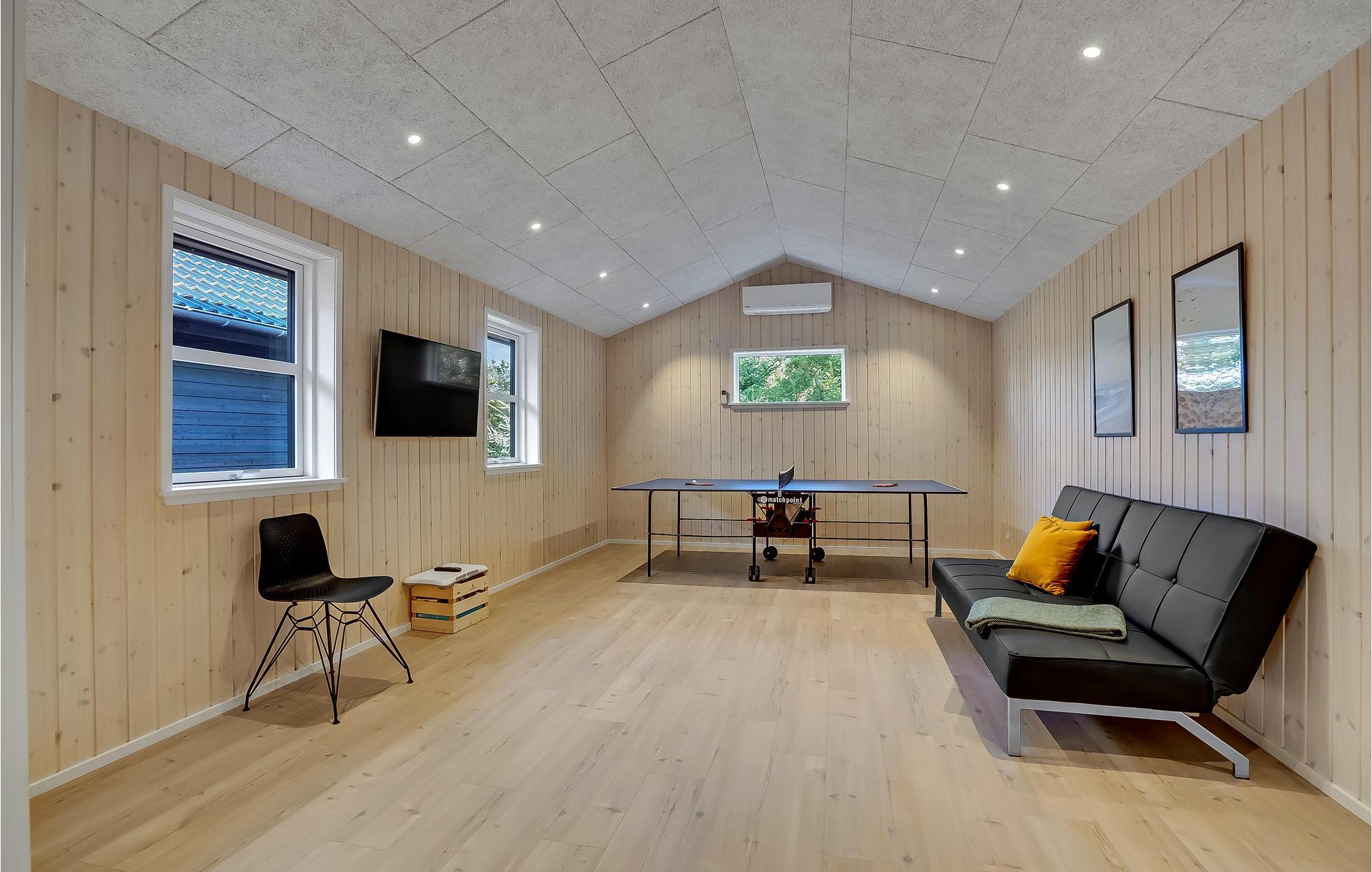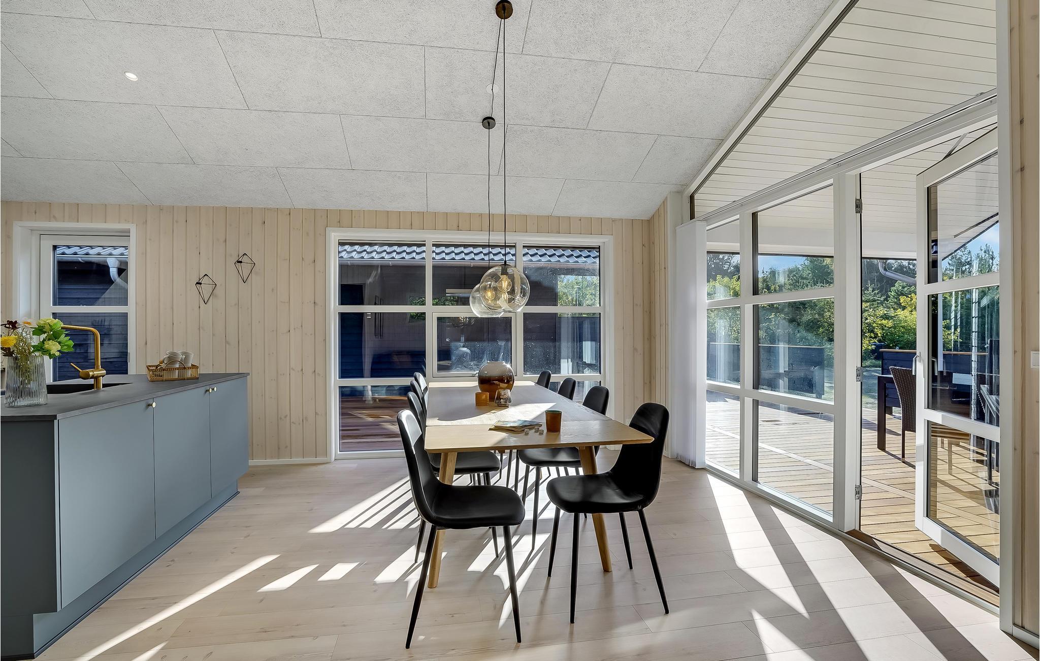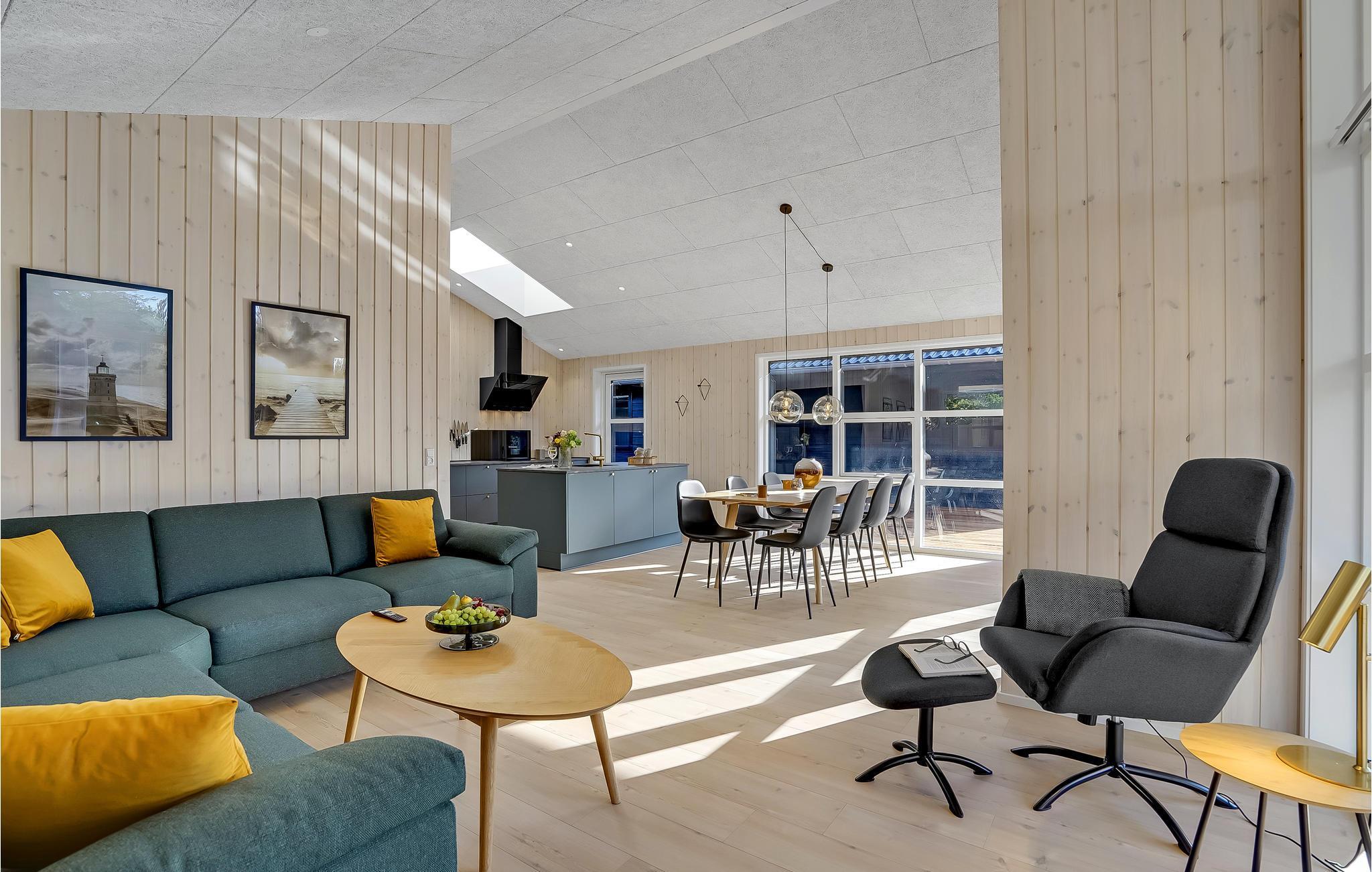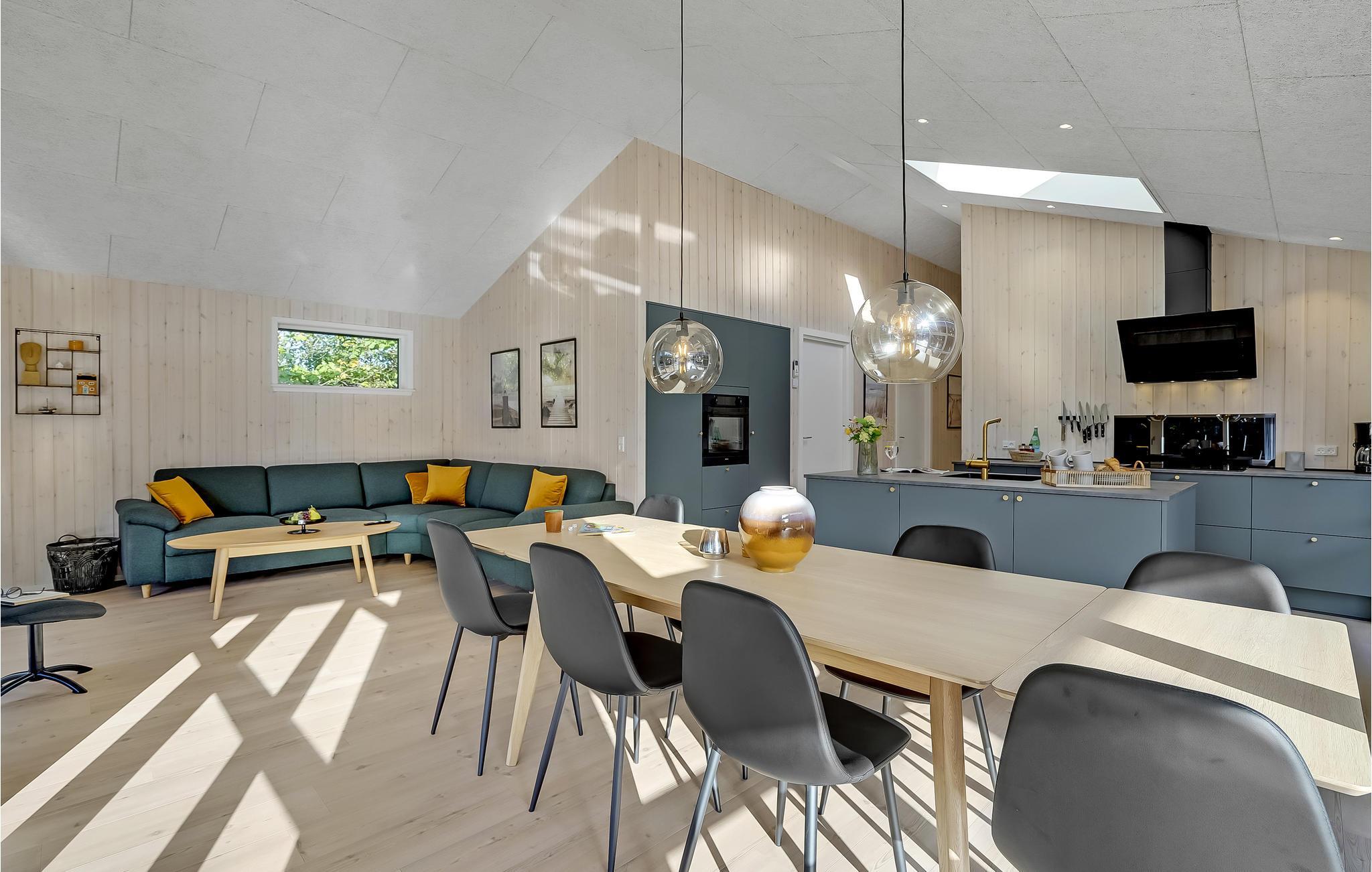 Dette skønne feriehus ligger tæt ved Nissum Fjord. Det moderne hus består af veludstyrede værelser og lyst, skandinavisk design. Tilbring hyggelige timer over måltiderne i den skønne stue eller spis på terrassen, når det er sol og sommer. Der er mange underholdningsfaciliteter til hele familien - lige fra bordtennis til bordfodbold og Playstation4. I kommer ikke til at kede jer!