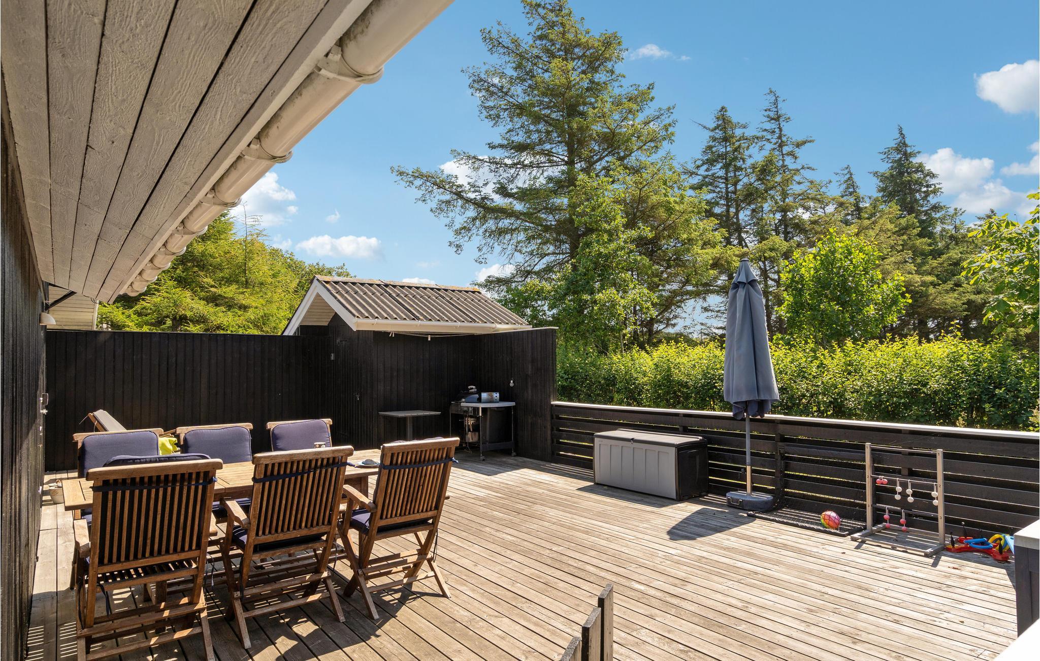 Velkommen til dette veludstyrede feriehus, der tilbyder jer alt, hvad I behøver til en ubekymret ferie. Det er det ideelle udgangspunkt for jeres aktiviteter og udflugter i området. Start dagen med en kop friskbrygget kaffe på den overdækkede terrasse og tilbered derefter morgenmad til dagen sammen i køkkenet. Om aftenen kan I nyde en hyggelig grillfest med jeres kære på den store terrasse og afslutte aftenen med et spil kort.