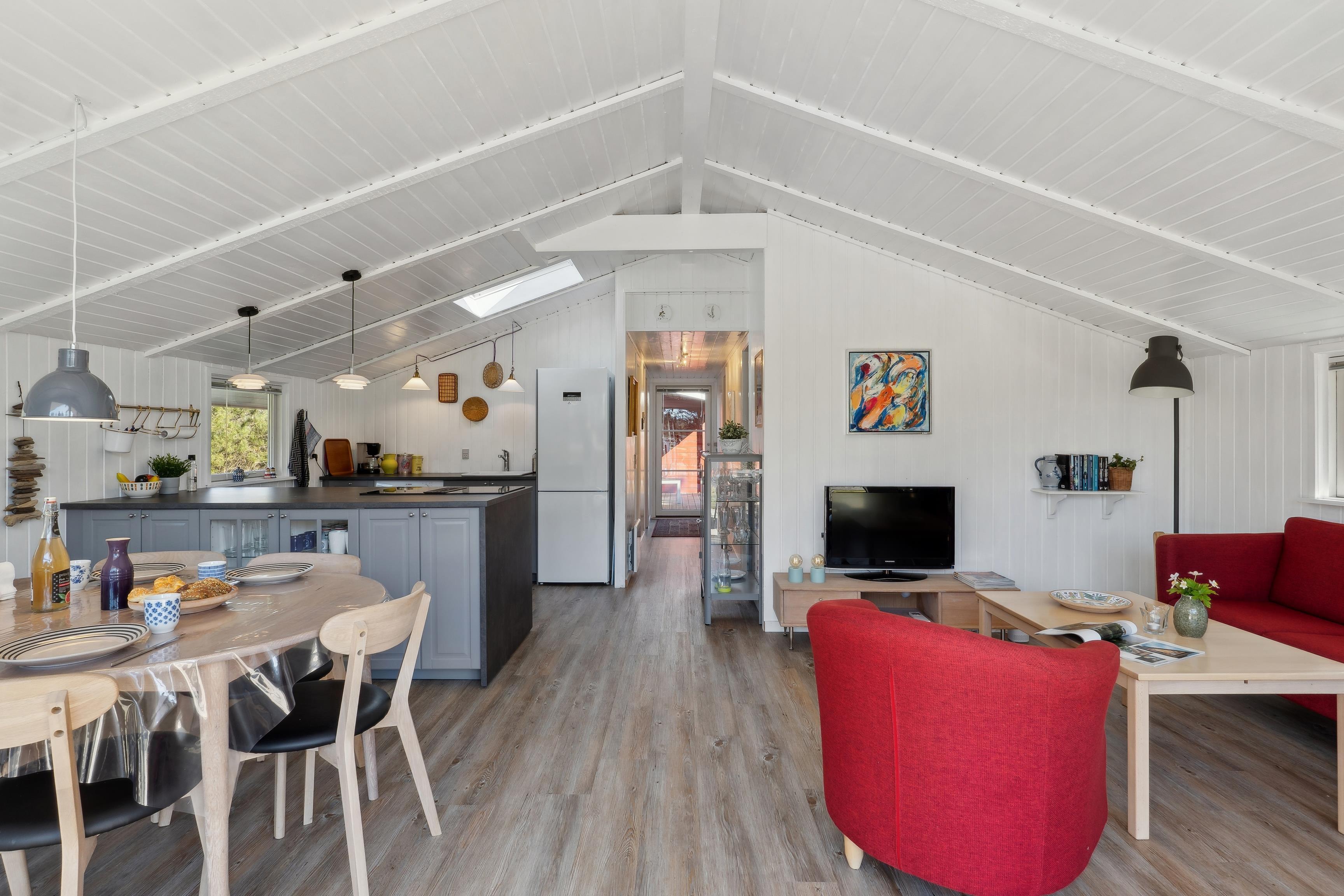 Sommerhuset er velegnet til op til 4 personer og byder på et helt nyt, funktionelt køkken, hvor du kan tilberede lækre feriemåltider. I den hyggelige stue finder du både TV og en moderne pilleovn, der skaber en varm og behagelig atmosfære, især på kølige dage.