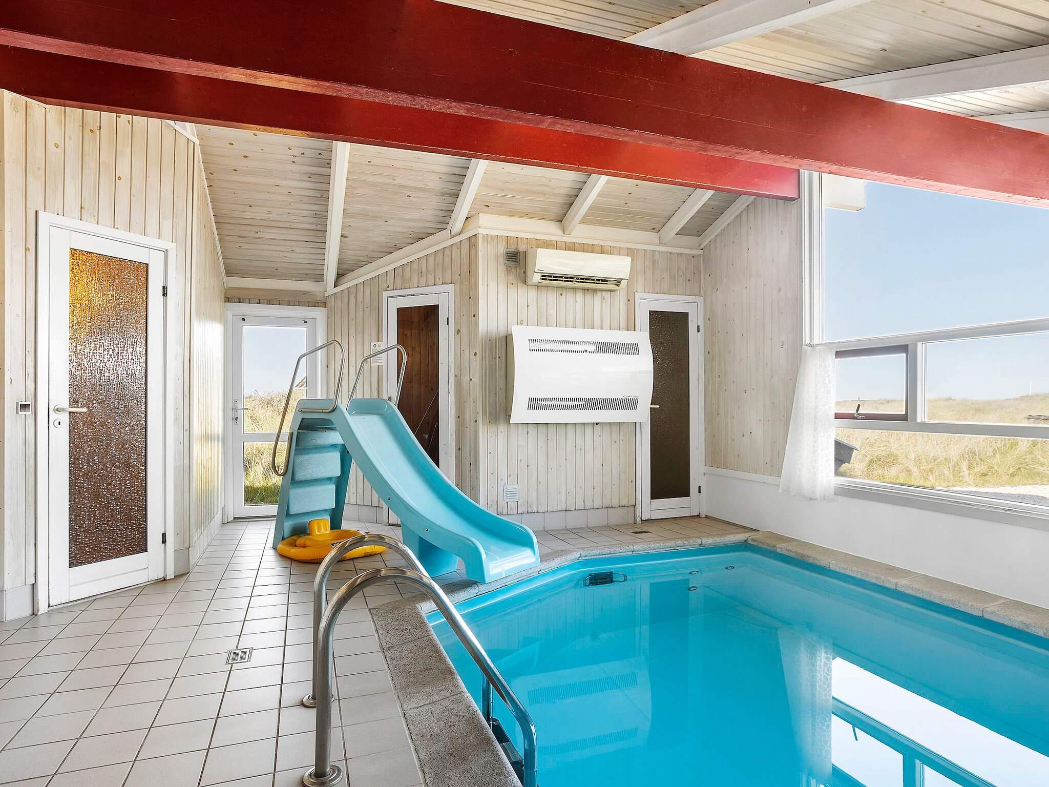 Huset har køkken, badeværelser, senge (heraf to med elevation) og udsmykning fra efteråret 2012. Der er et SmartTv i huset. Indretningen er i moderne dansk sommerhusstil med køkken/stue i åben forbindelse, tre soveværelser, hems, to badeværelser, swimmingpool med rutchebane, spabad, sauna samt terrasse der sikrer det bedst mulige lysindfald dagen igennem, således at rummene fremtræder lyse og venlige. Ejeren har med sikker hånd og god sans for kvalitet afstemt farver og møblement, således at ethvert ophold i huset bliver behageligt. Det ene værelse er udstyret med tv til egen medbragt spillekonsol eller dvd-afspiller.