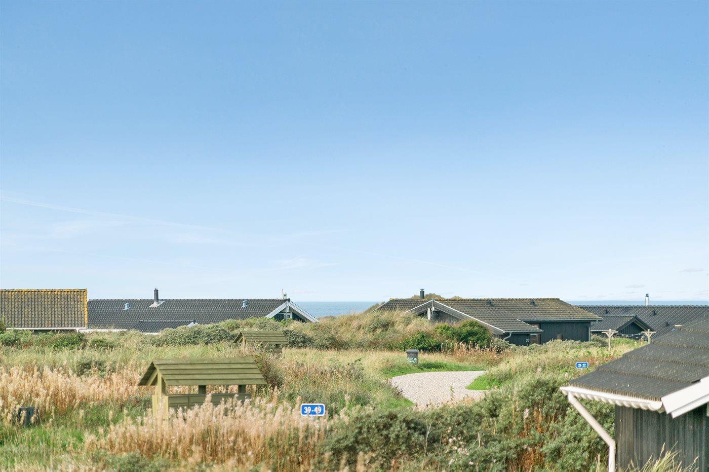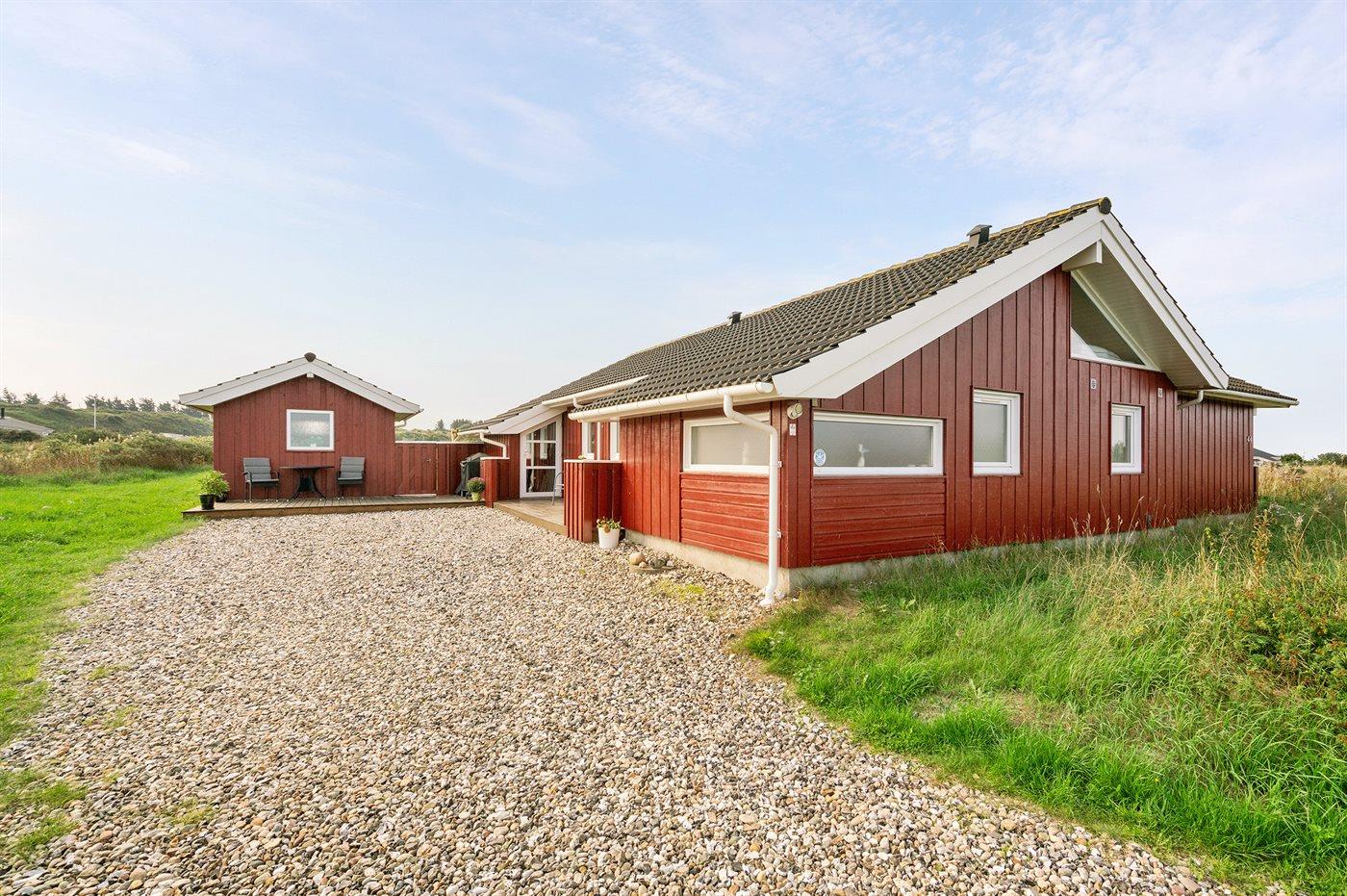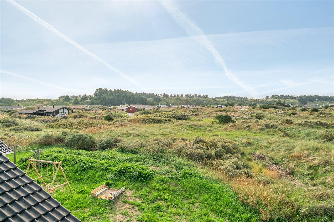 Ferieboligen er beliggende på en 1400 m² stor klitgrund. Der er 400 m til havet. Nærmeste forretning er beliggende i en afstand af 1500 m. Til ferieboligen hører 70 m² terrasseareal. Desuden er der 20 m² overdækket terrasse. Der er redskabsrum. Gynge. Sandkasse. Der er installeret stik til opladning af elbil. Med 11 kW ladeeffekt. Parkering ved ferieboligen.