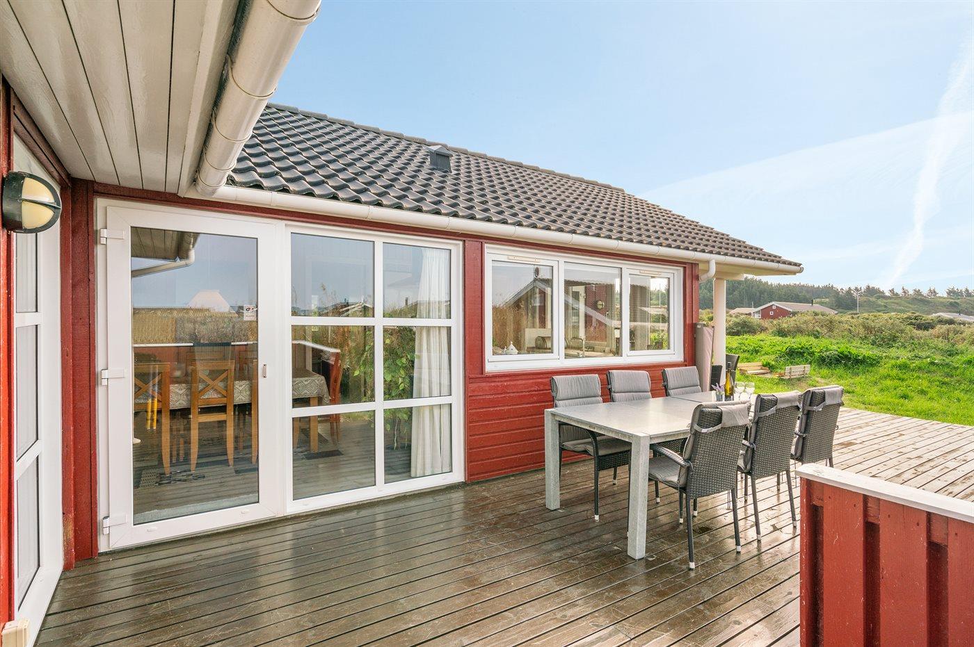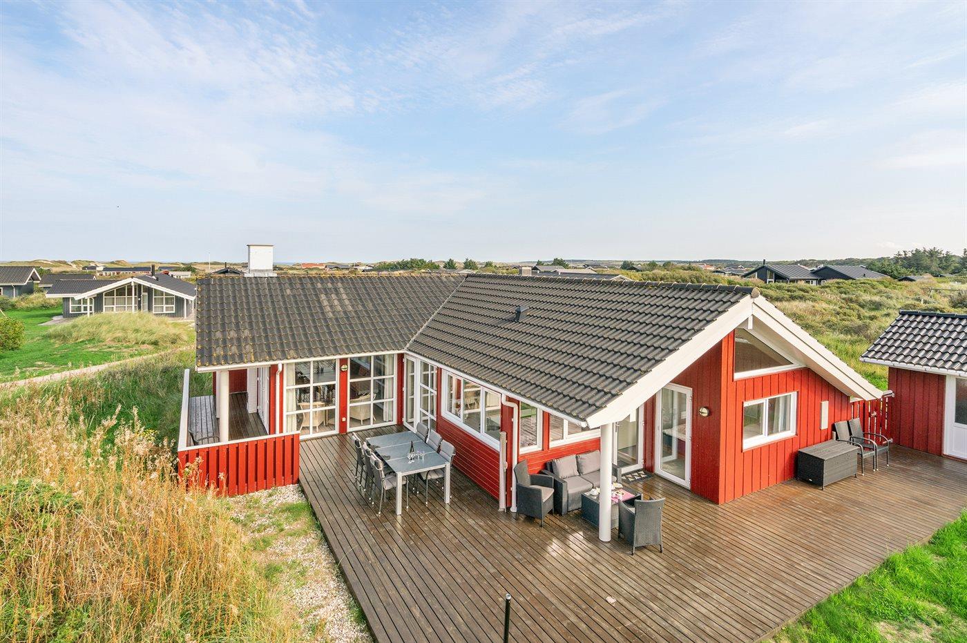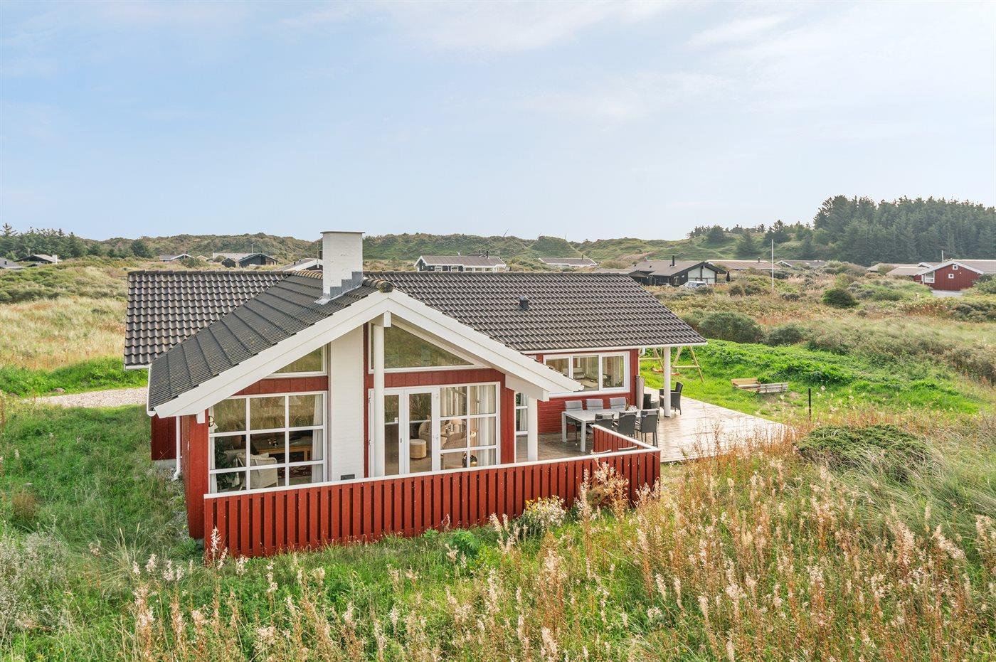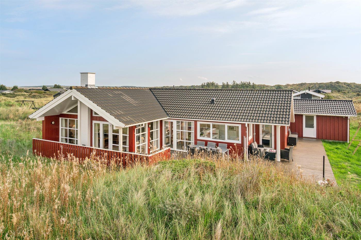Ferieboligen er beliggende på en 1400 m² stor klitgrund. Der er 400 m til havet. Nærmeste forretning er beliggende i en afstand af 1500 m. Til ferieboligen hører 70 m² terrasseareal. Desuden er der 20 m² overdækket terrasse. Der er redskabsrum. Gynge. Sandkasse. Der er installeret stik til opladning af elbil. Med 11 kW ladeeffekt. Parkering ved ferieboligen.