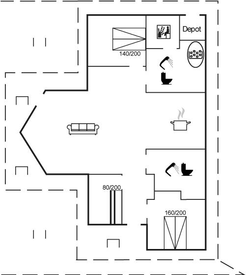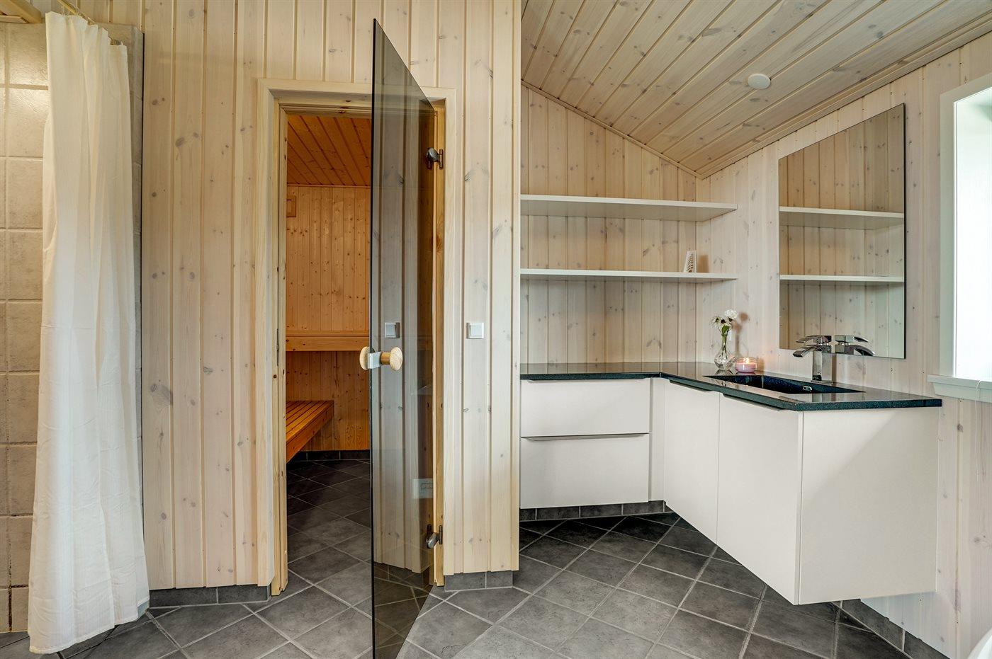 Der er 2 badeværelser med bruser og 2 toiletter. Der er gulvvarme på 1 badeværelse. I saunaen er der mulighed for afslapning.