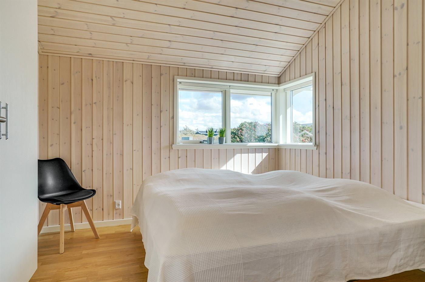 Der er i alt 3 soveværelser. Sovepladserne fordeler sig på: 4 sovepladser i dobbeltsenge. 2 sovepladser i enkeltsenge. 2 sovepladser i køjeseng. 2 af disse sovepladser befinder sig på husets hems. Derudover er der 1 stk. barneseng.