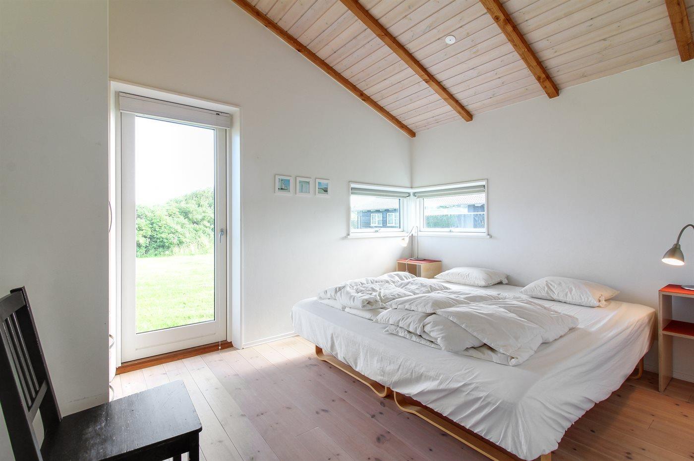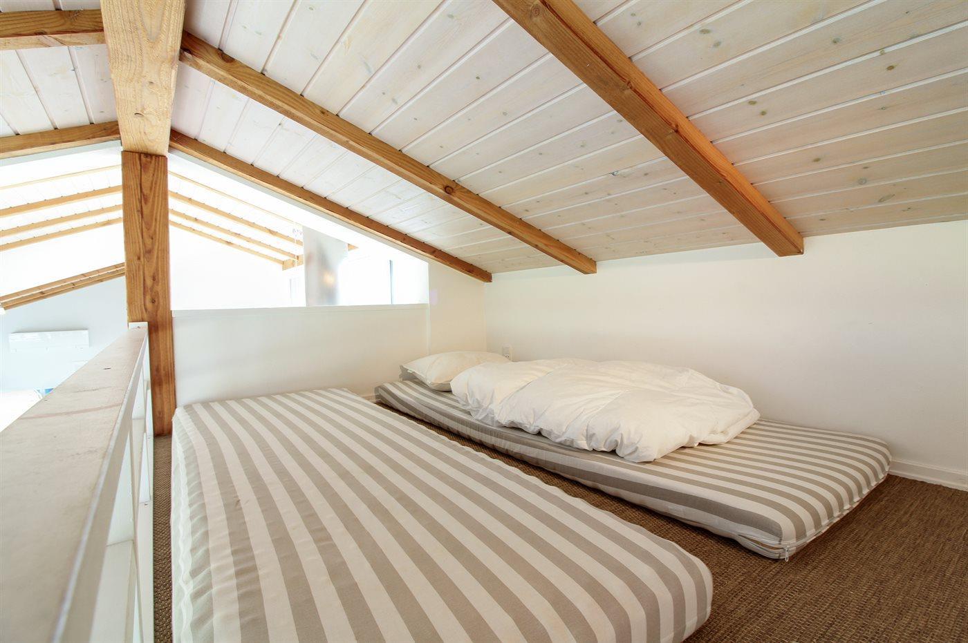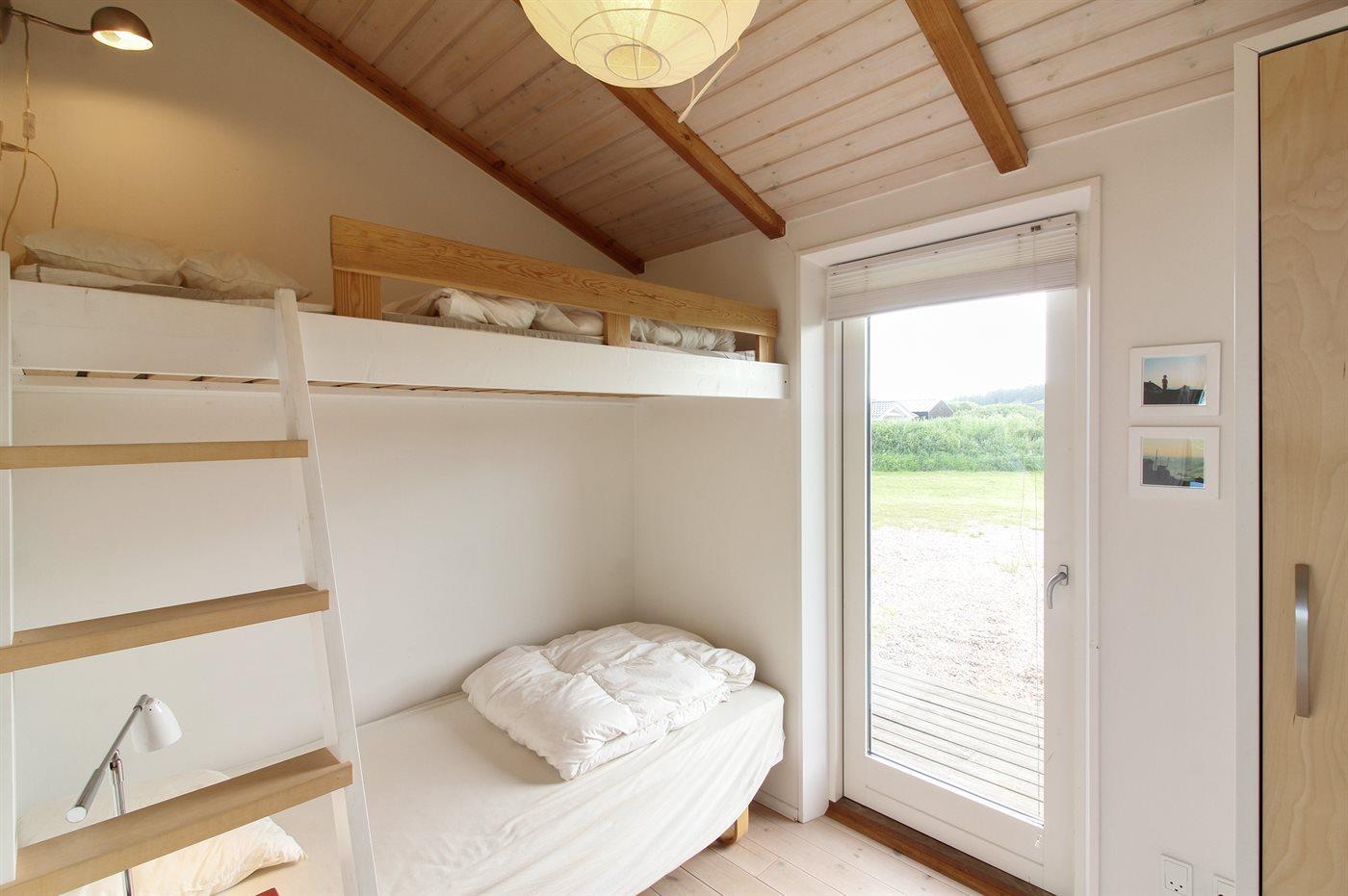 Husets 10 sovepladser fordeler sig på 2 dejlige soveværelser med dobbeltseng, 1 med køjeseng, 1 med 1 enkeltseng samt 3 sovepladser på hems. Trægulve, dog klinkegulv i køkken og på badeværelserne.