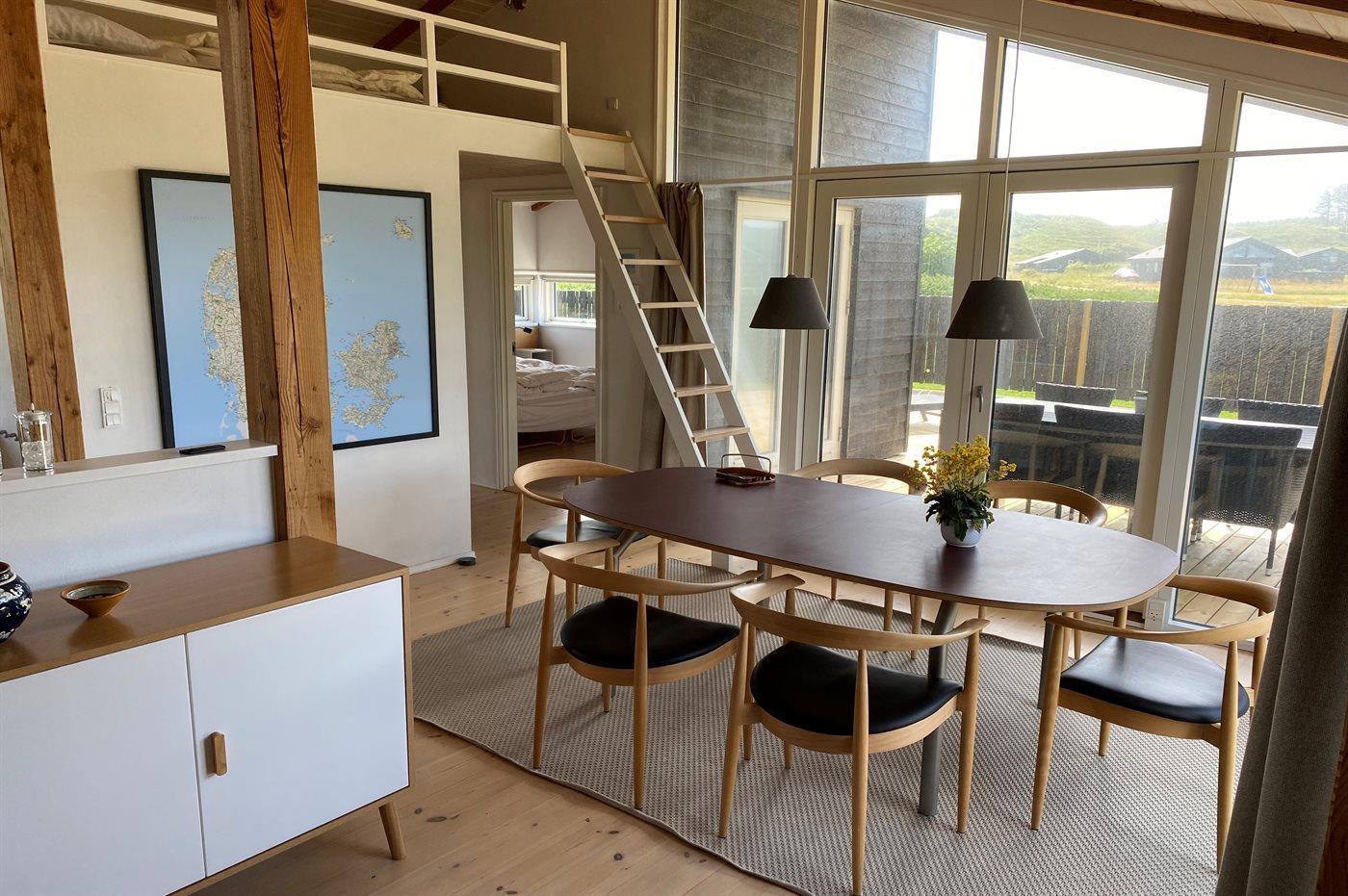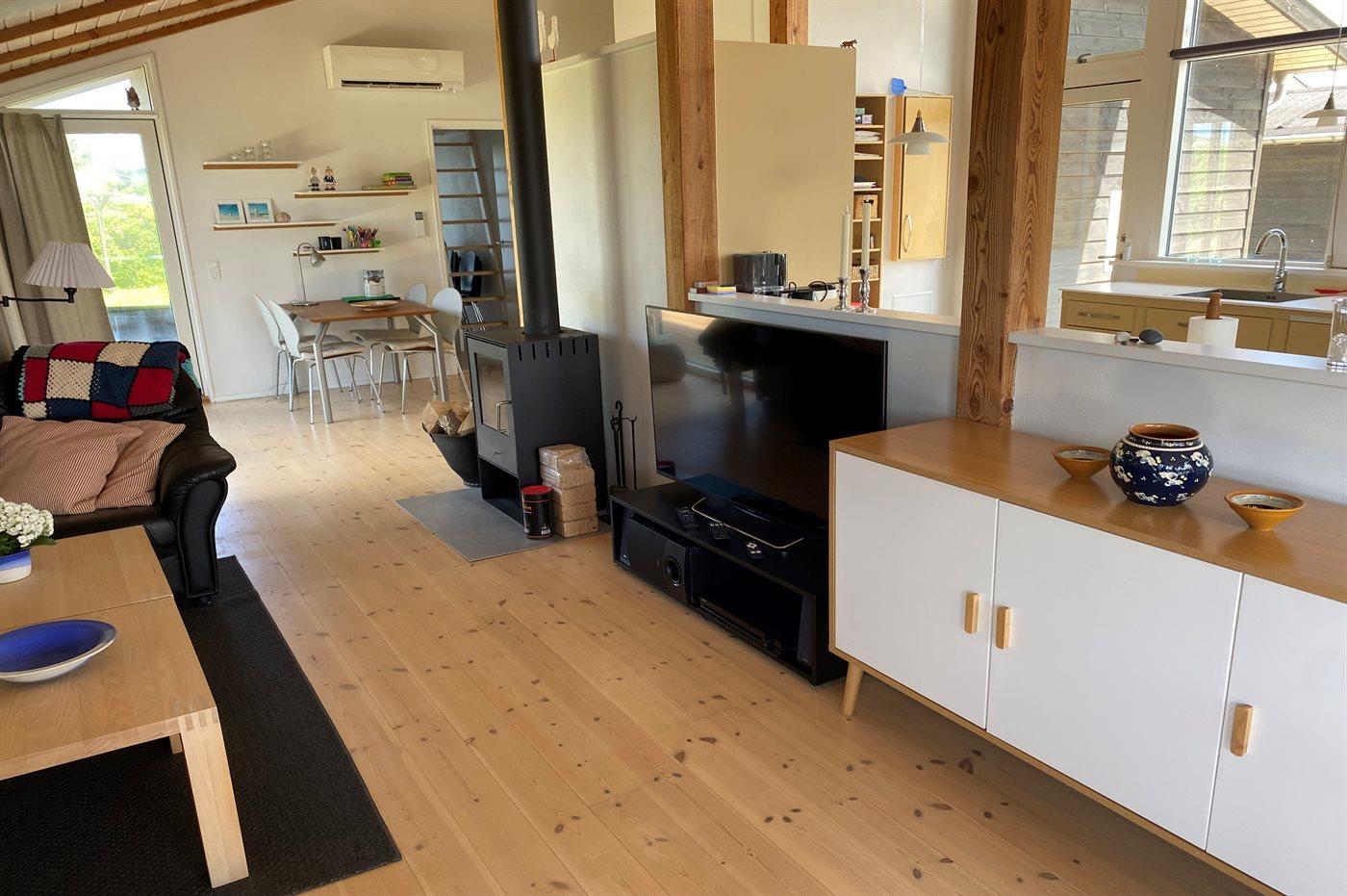 I huset forefindes endvidere spisestue med udgang til overdækket terrasse samt en skøn, stor opholdsstue med brændeovn, 2 TV, heraf 1 Smart-TV, parabol (digital - tyske og nordiske programmer), 2 Chromecast, DVD-afspiller og stereoanlæg med CD-afspiller. Der er desuden installeret trådløs internetforbindelse.