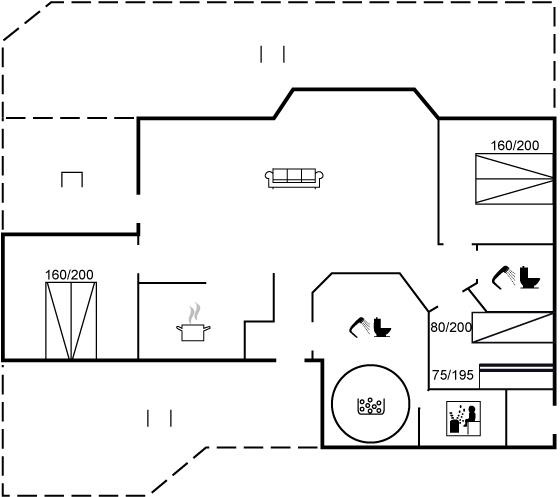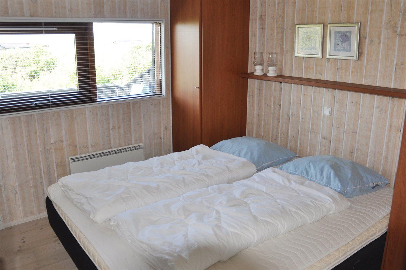 Der er i alt 3 soveværelser. Sovepladserne fordeler sig på: 4 sovepladser i dobbeltsenge. 1 soveplads i enkeltseng. 2 sovepladser i køjeseng.