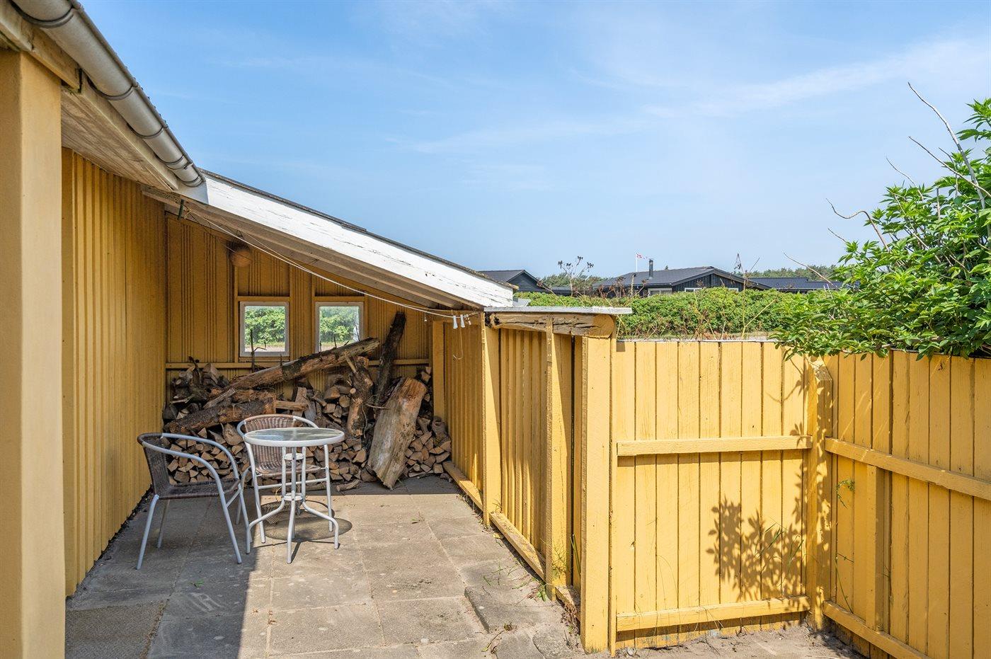 Ferieboligen er beliggende på en 1300 m² stor naturgrund. Der er 300 m til havet. Nærmeste forretning er beliggende i en afstand af 1500 m. Til ferieboligen hører 30 m² terrasseareal. Desuden er der 12 m² overdækket terrasse. Heraf i alt 30 m² lukket terrasse. Der er redskabsrum. Gynge. Sandkasse. Rutchebane. Grill til rådighed.