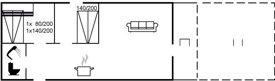 Der er i alt 2 soveværelser. Sovepladserne fordeler sig på: 4 sovepladser i dobbeltsenge.1 soveplads i køjeseng. Derudover er der 1 stk. barneseng.