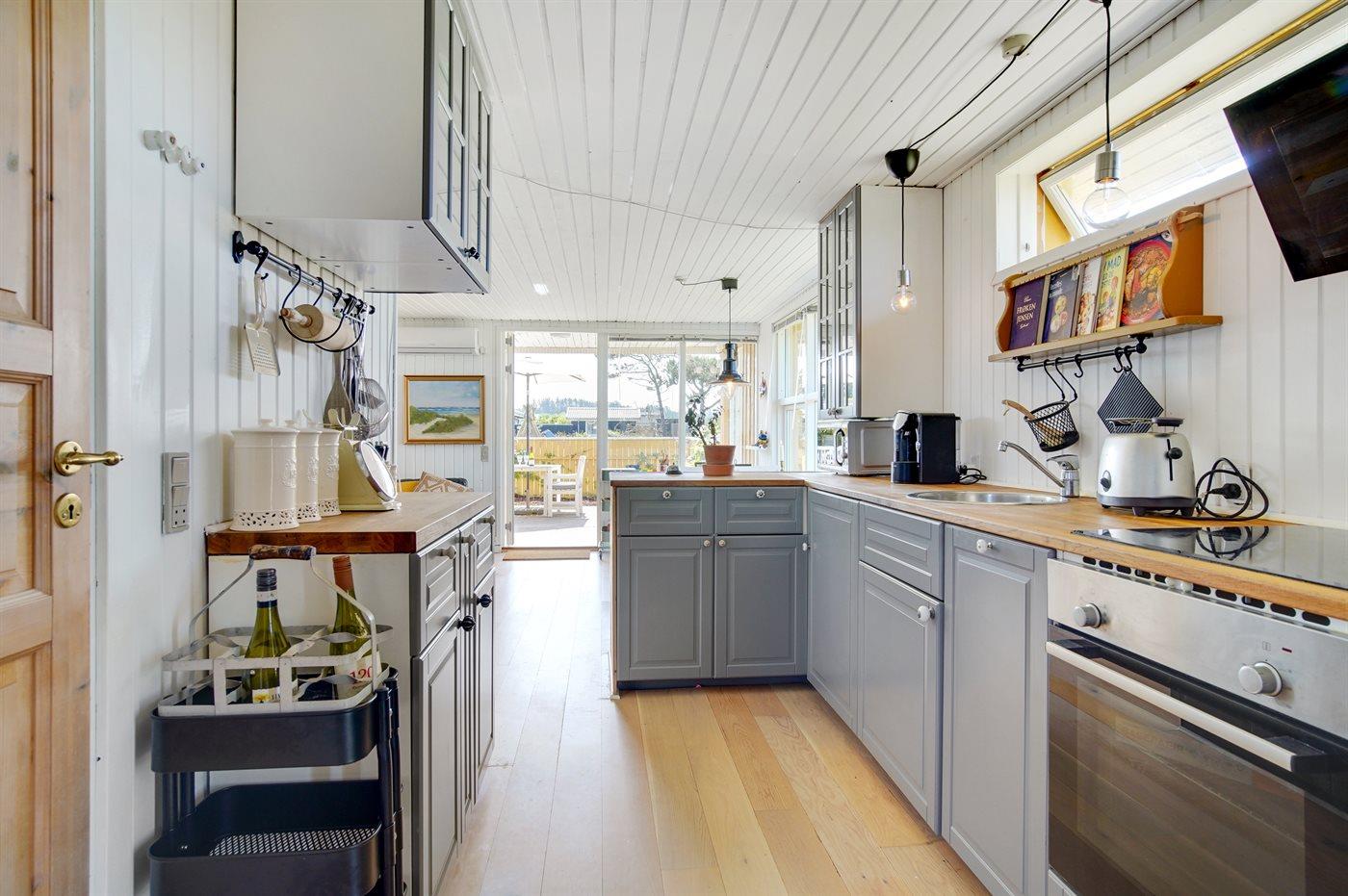 Køkkenet er udstyret med 1 køleskab. Der er 4 induktionskogeplader, varmluftovn, mikrobølgeovn samt opvaskemaskine.