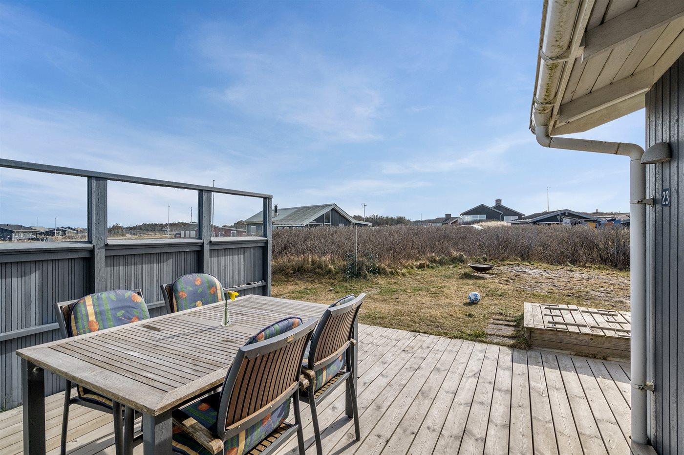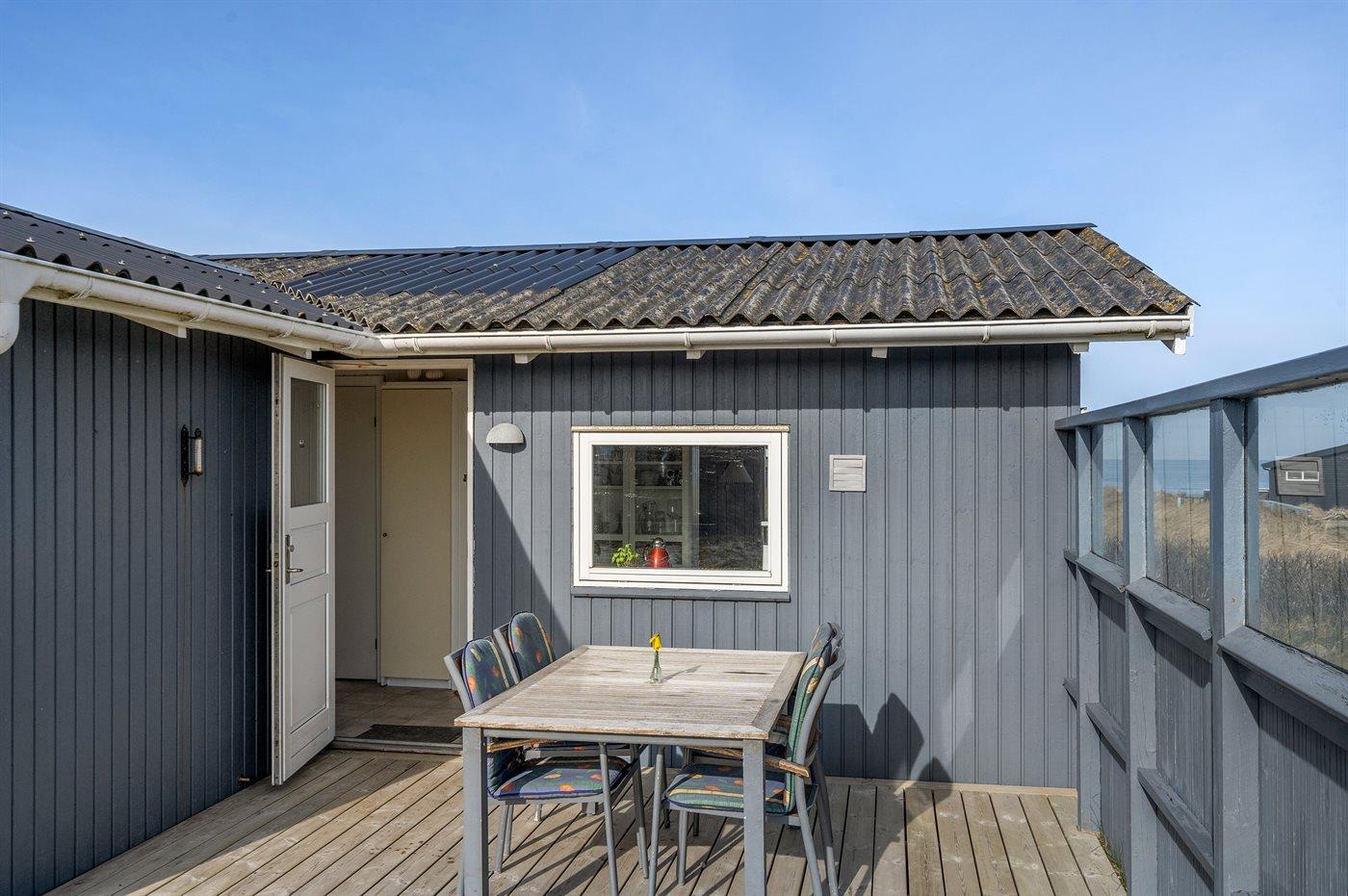 Charmerende sommerhus tæt på Vesterhavet med havudsigt, terrasse og naturgrund.