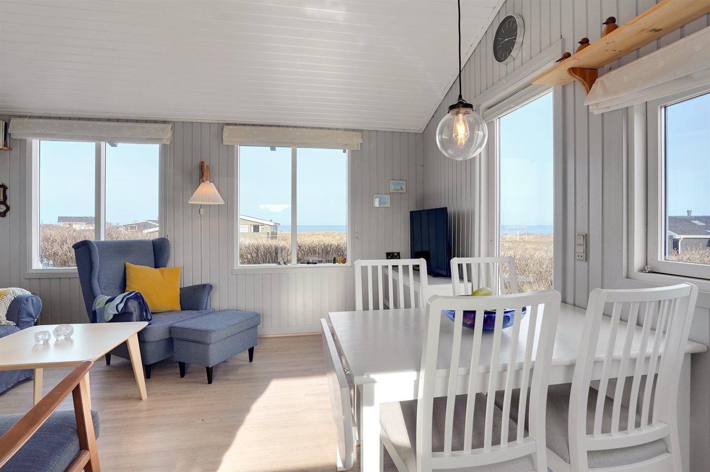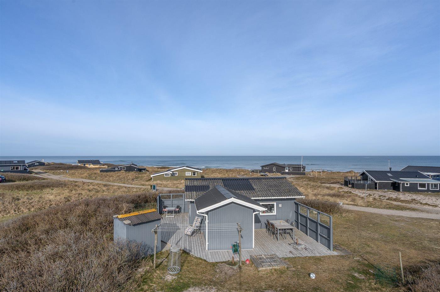 Meget tæt på stranden og Vesterhavet ligger dette ældre lille sommerhus med skøn udsigt over havet.