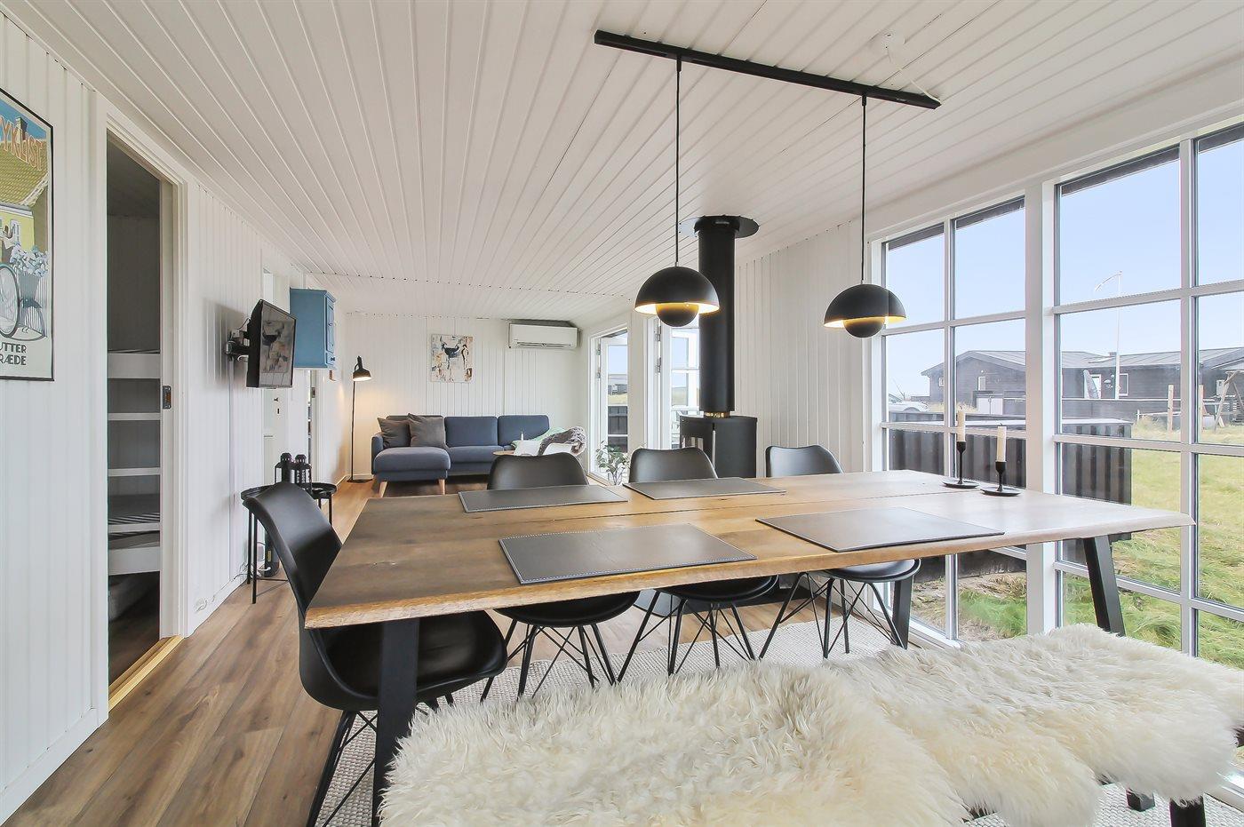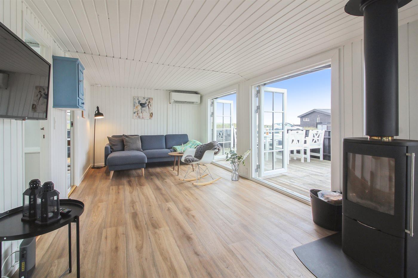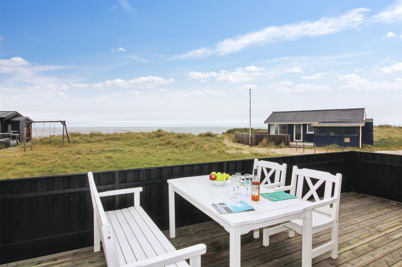 Lige ved stranden og Vesterhavet ligger dette lille hyggelige sommerhus med udsigt til vandet fra såvel hus som grund. Huset er egnet til gæster som ikke stiller store krav til luksus, men som elsker at bo tæt ved stranden. Til huset hører terrasser med gode afskærmninger og læmuligheder på den åbne grund. I nærheden findes et stort feriecenter med mange aktivitetsmuligheder, supermarked, restaurant, ridecenter, tennisbaner, tropisk badeland og romersk bad.