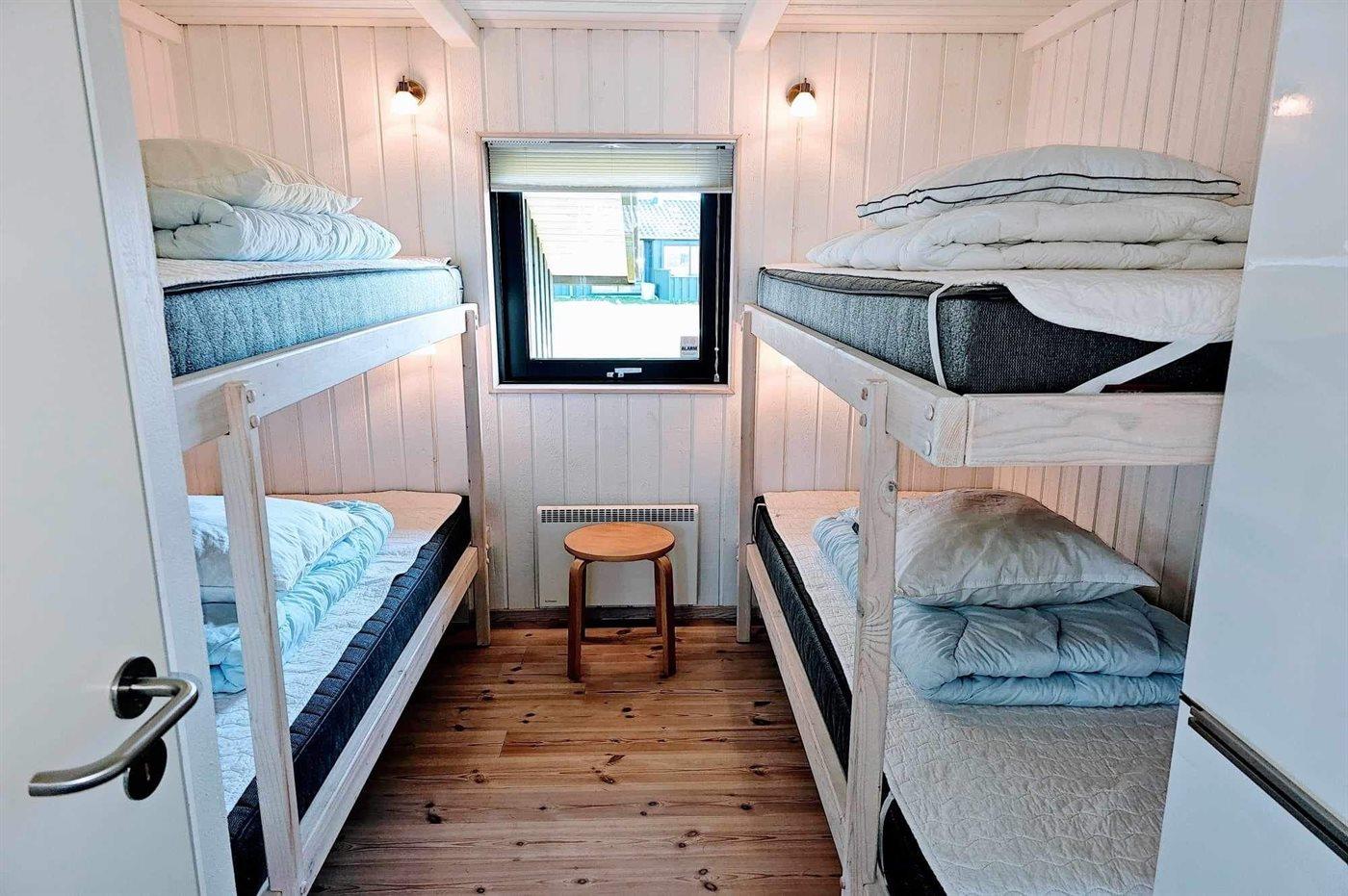 Der er i alt 3 soveværelser. Sovepladserne fordeler sig på: 4 sovepladser i dobbeltsenge. 4 sovepladser i køjesenge. Derudover er der 1 stk. barneseng.