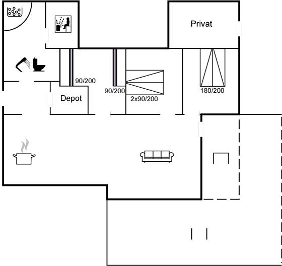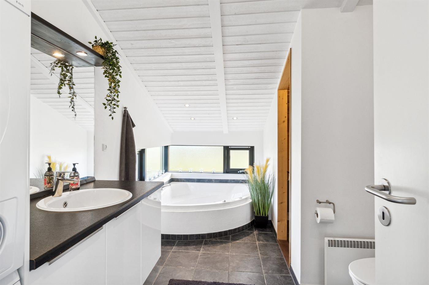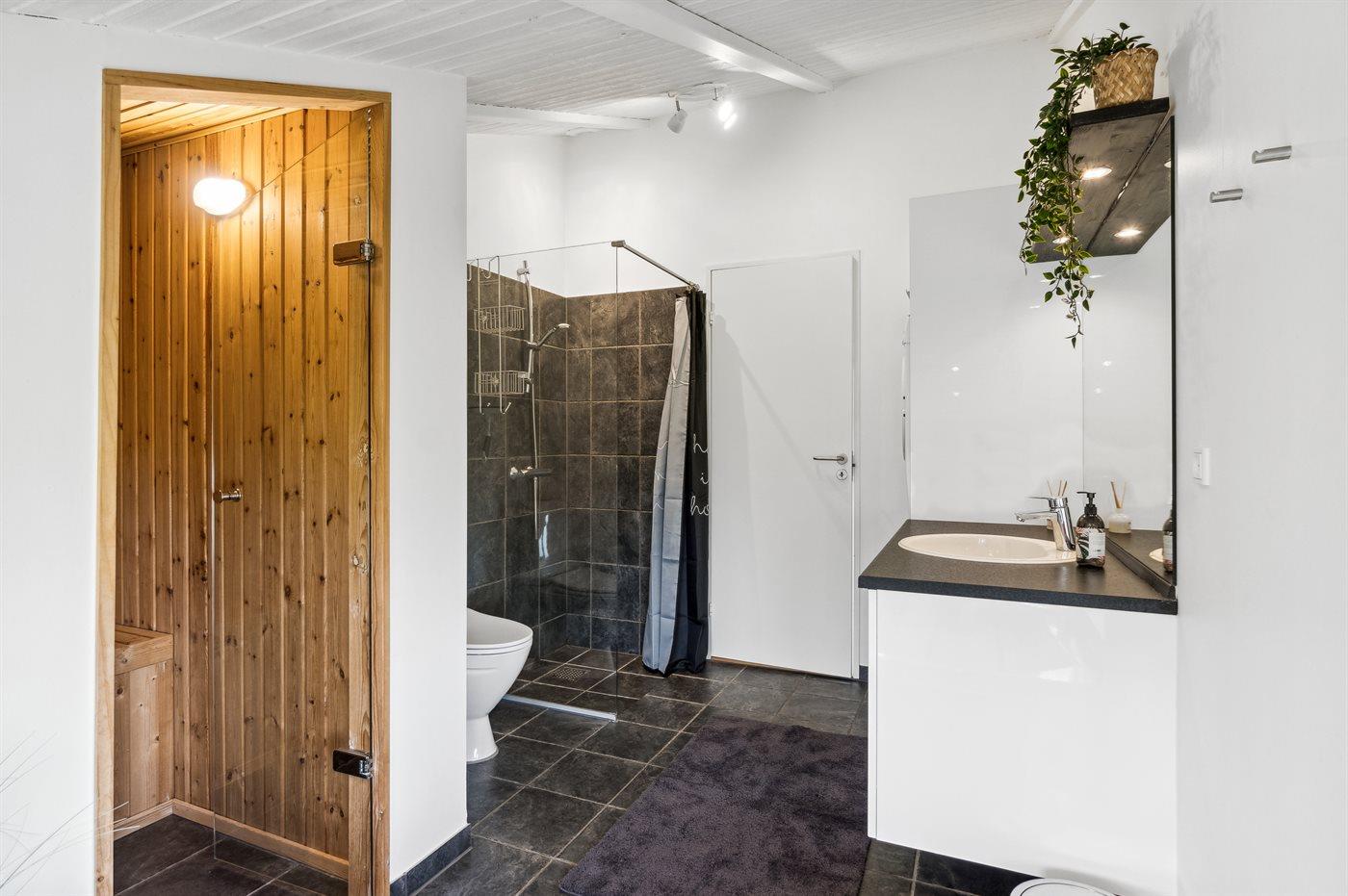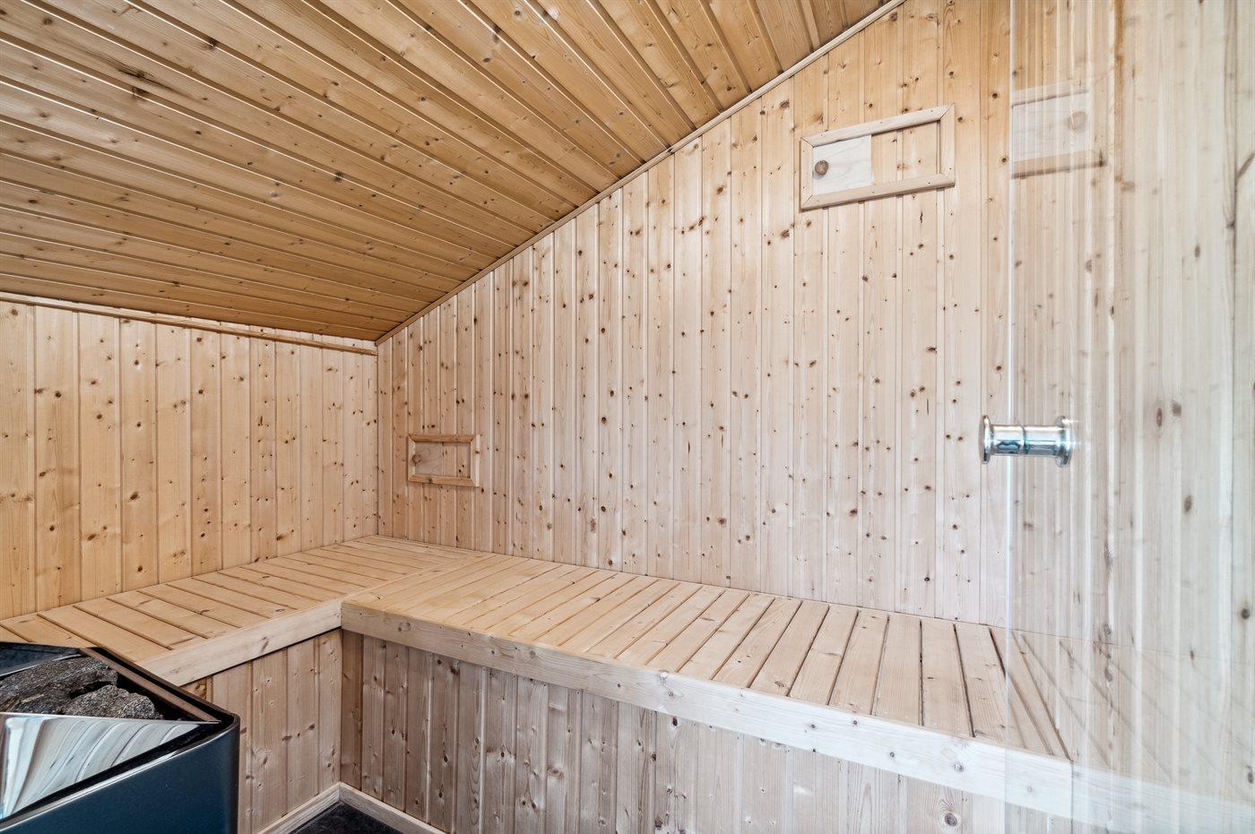 Der er 1 badeværelse med bruseniche og 1 toilet.. Der er gulvvarme på 1 badeværelse. I saunaen er der mulighed for afslapning.