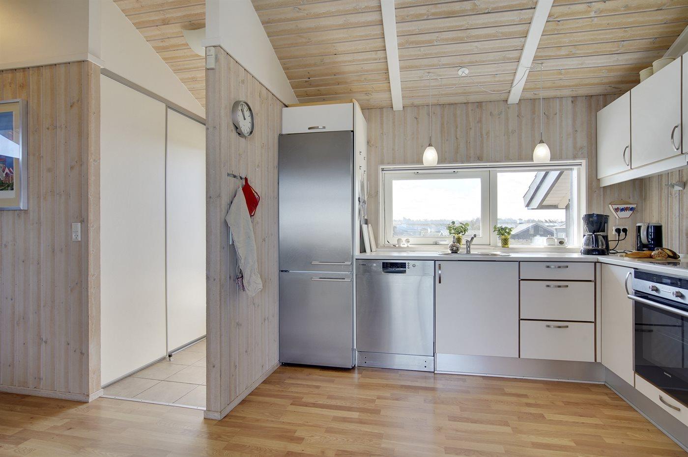 Køkkenet er udstyret med 1 køleskab. Der er 4 keramiske kogeplader, varmluftovn, mikrobølgeovn samt opvaskemaskine.