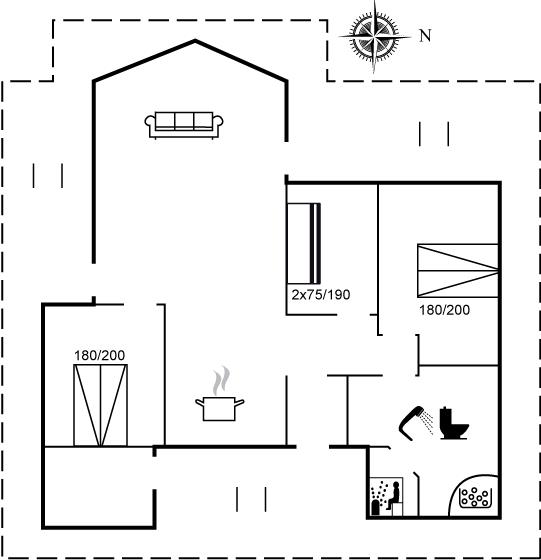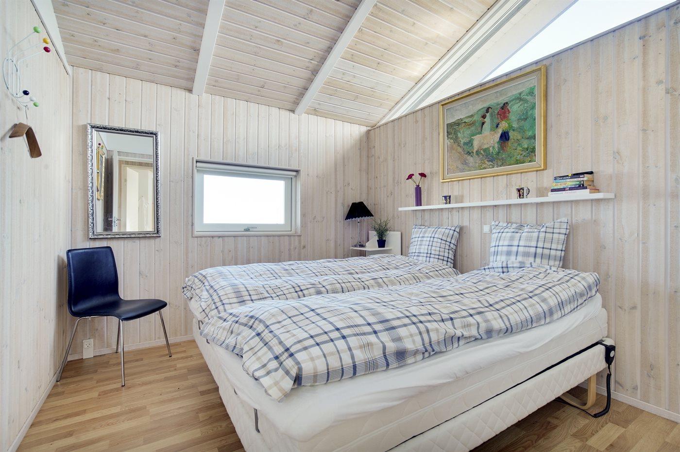 Der er i alt 3 soveværelser. Sovepladserne fordeler sig på: 4 sovepladser i dobbeltsenge. 2 sovepladser i køjeseng. 2 sovepladser på madrasser. 2 af disse sovepladser befinder sig på husets hems. Derudover er der 1 stk. barneseng.