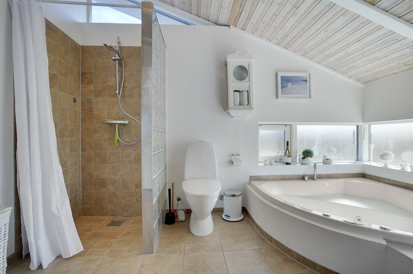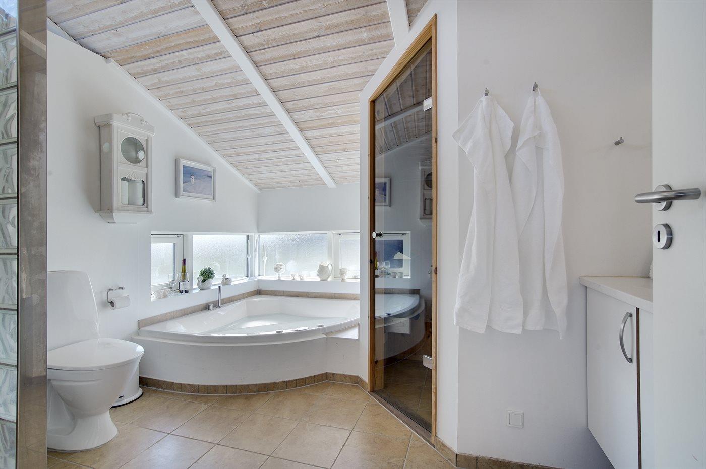 Der er 1 badeværelse med bruseniche og 1 toilet.. Der er gulvvarme på 1 badeværelse. I saunaen er der mulighed for afslapning.