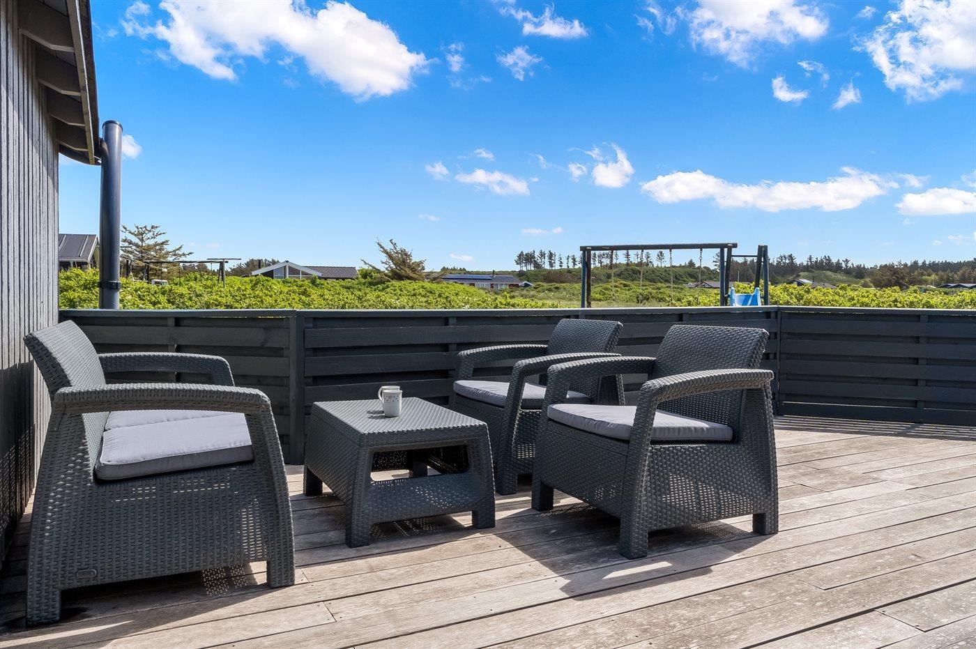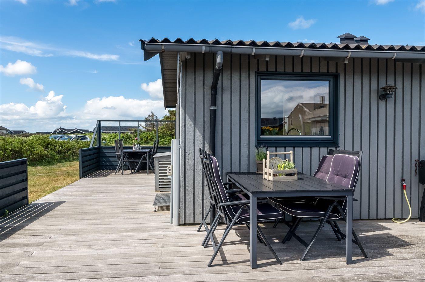 Ferieboligen er beliggende på en 1280 m² stor naturgrund. Der er 200 m til havet. Nærmeste forretning er beliggende i en afstand af 1500 m. Til ferieboligen hører åbent terrasseareal. Der er redskabsrum. Gynge. Rutchebane. Grill til rådighed. Parkering ved ferieboligen.