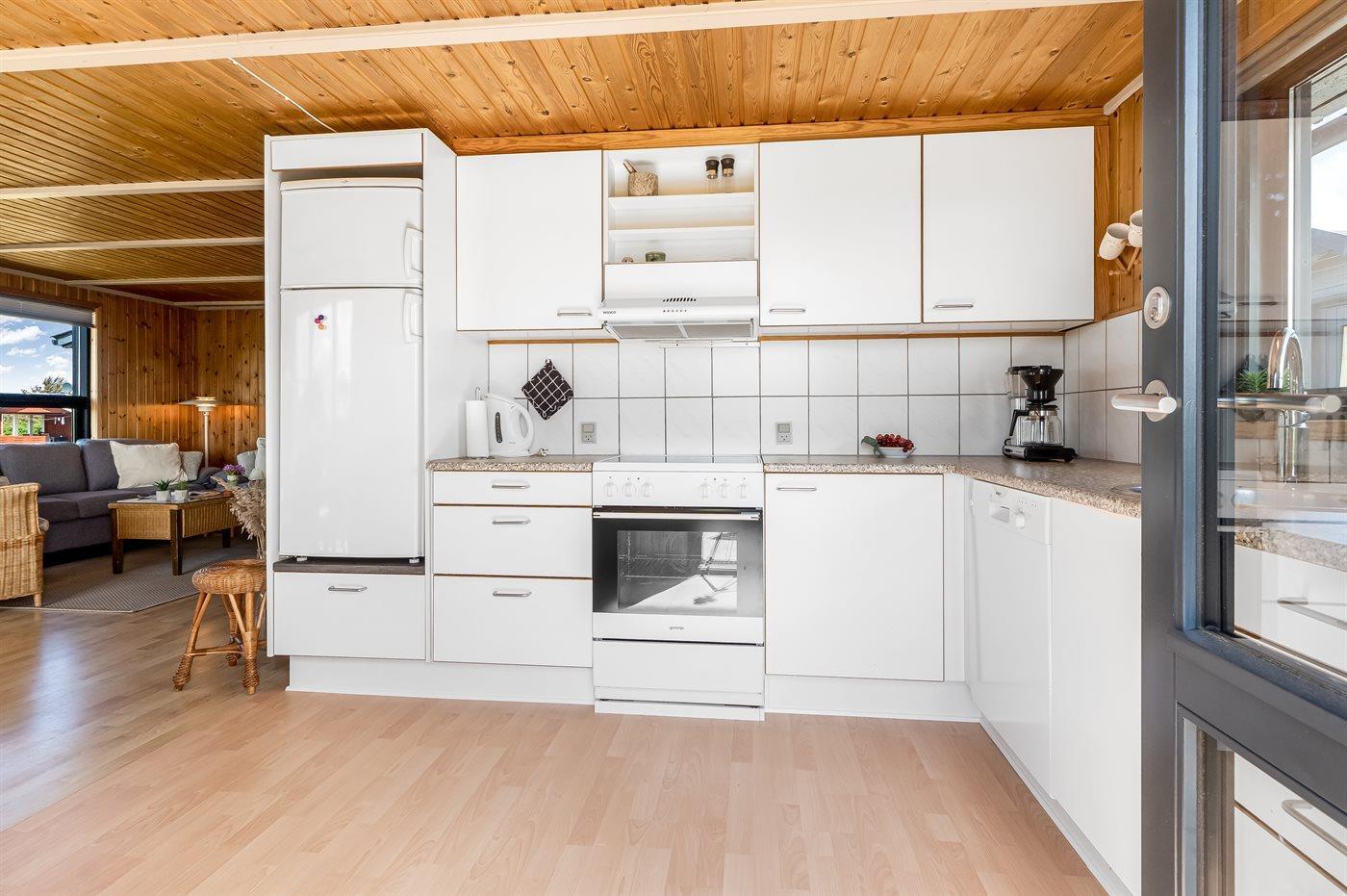 Køkkenet er udstyret med 1 køleskab. Der er 4 keramiske kogeplader, varmluftovn, mikrobølgeovn samt opvaskemaskine.