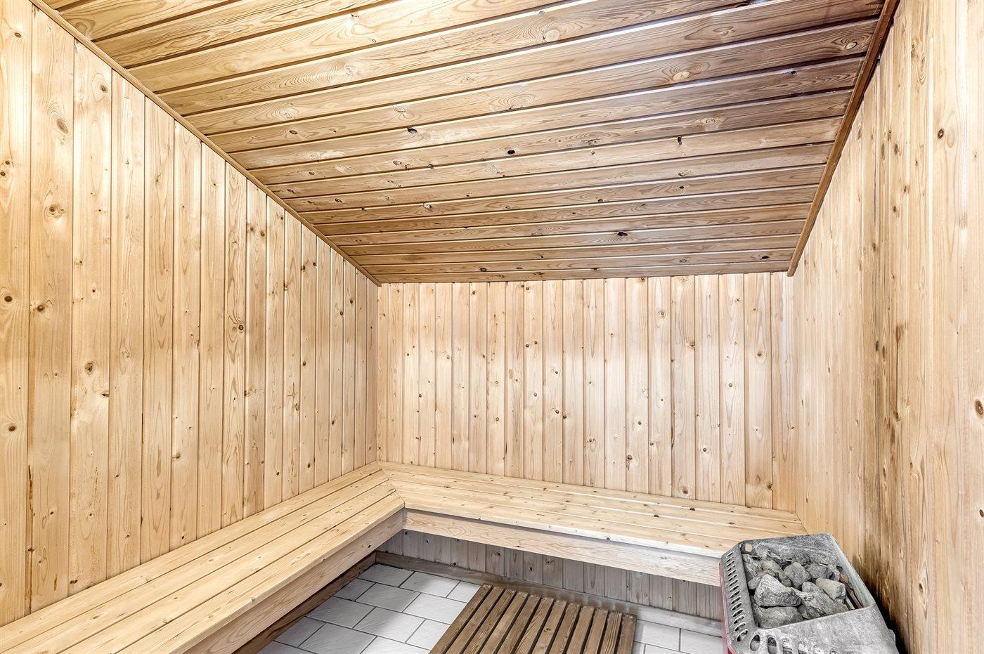 Der er 2 badeværelser med bruseniche og 2 toiletter. Der er gulvvarme på 2 badeværelser. I saunaen er der mulighed for afslapning.