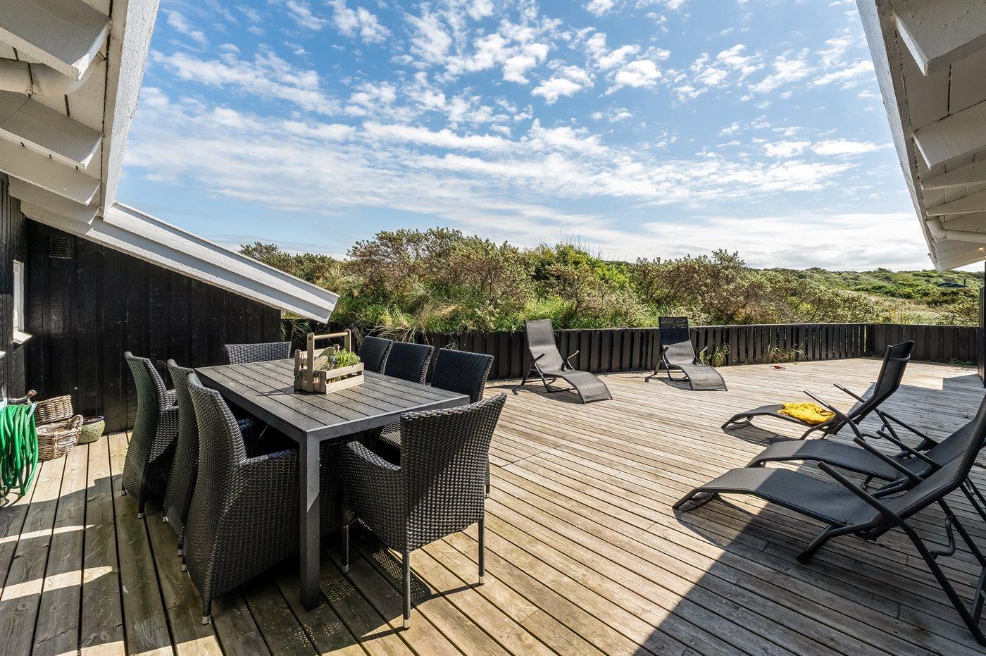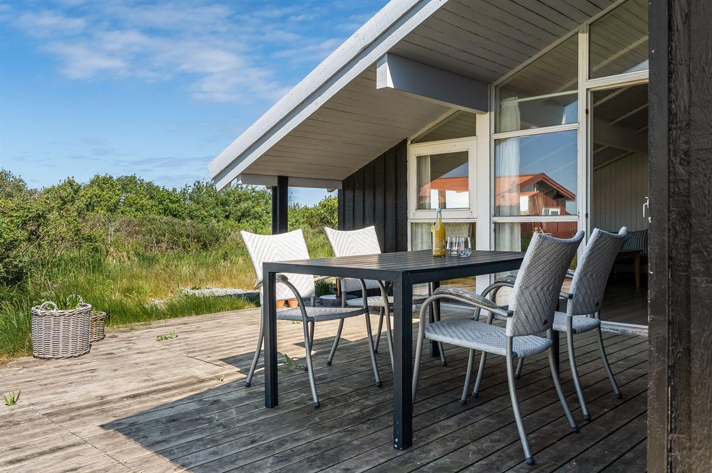 Ferieboligen er beliggende på en 2700 m² stor naturgrund. Der er 350 m til havet. Nærmeste forretning er beliggende i en afstand af 2500 m. Til ferieboligen hører åbent terrasseareal. Desuden er der overdækket terrasse. Der er redskabsrum. Grill til rådighed. Der er installeret stik til opladning af elbil. Parkering ved ferieboligen.