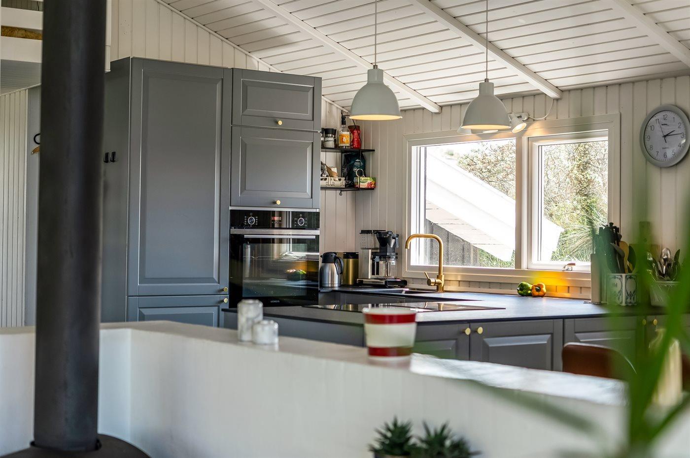 Køkkenet er udstyret med 1 køleskab. Der er 4 induktionskogeplader, varmluftovn, mikrobølgeovn samt opvaskemaskine.