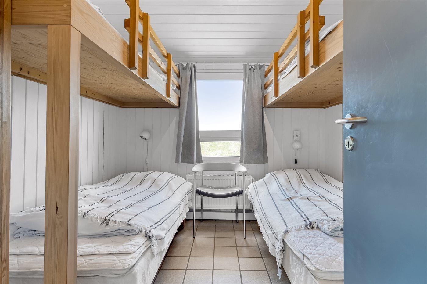 Der er i alt 4 soveværelser. Sovepladserne fordeler sig på: 4 sovepladser i dobbeltsenge. 6 sovepladser i køjesenge. 2 sovepladser på madrasser. 2 af disse sovepladser befinder sig på husets hems. Derudover er der 1 stk. barneseng.