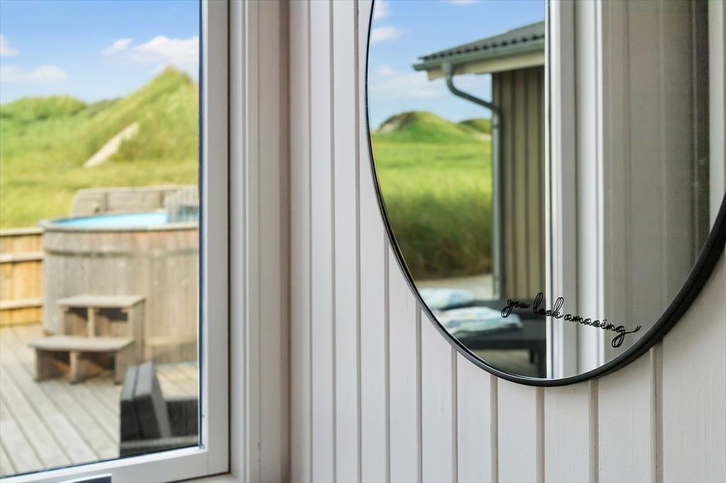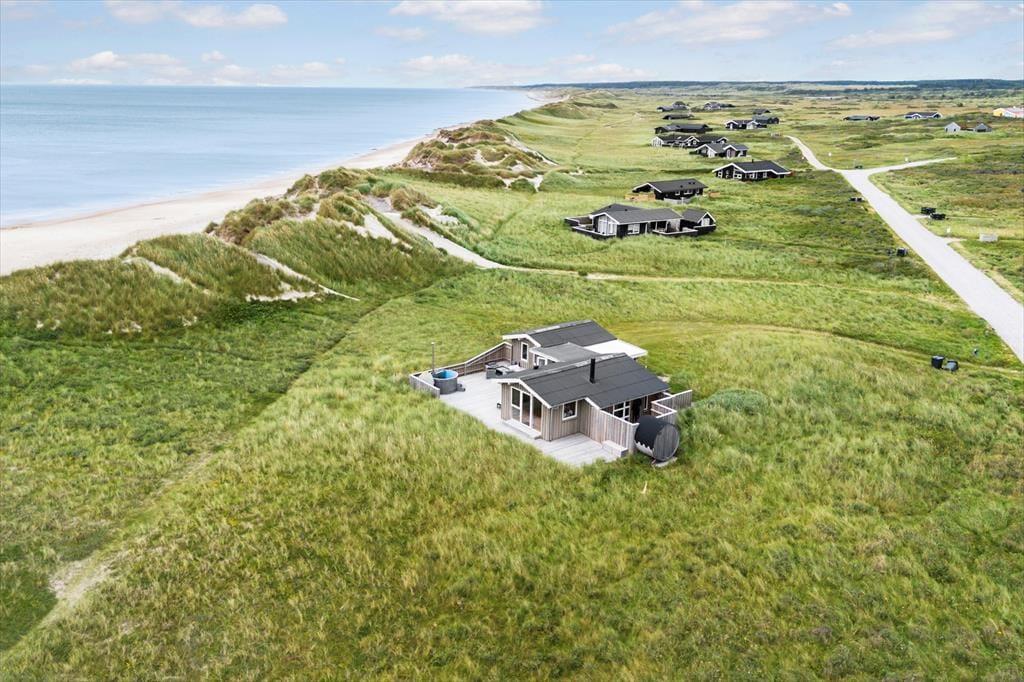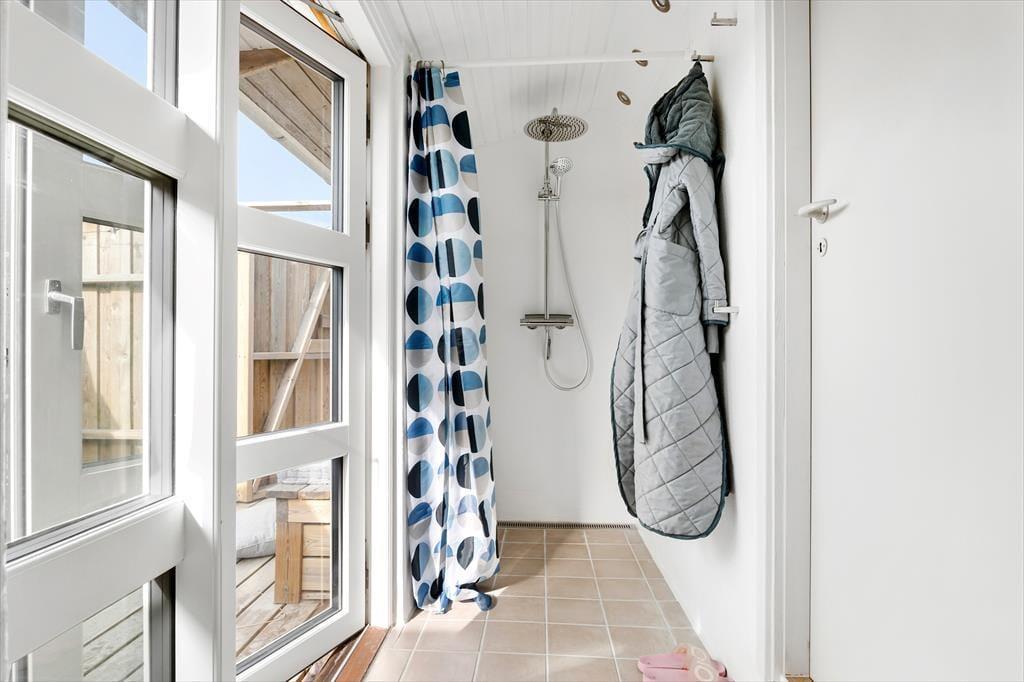 Sommerhusets tøndesauna ligger som del af en helt lukket og ugeneret terrasse, og her er der også udebruser, hvis du vil have et morgenbad i det fri eller få en kold afvaskning efter saunaturen. Vil du fyre op for endnu mere wellness i det fri, venter der et dejligt vildmarksbad på den åbne træterrasse mod nordvest – her kan du slappe af med fri udsigt til klitterne og frisk havluft i næseborene. Der er for øvrigt også en delvist overdækket terrasse på husets sydøstlige side, så alt i alt er det nemt at finde den helt rette opholdsplads uanset tidspunktet på dagen.