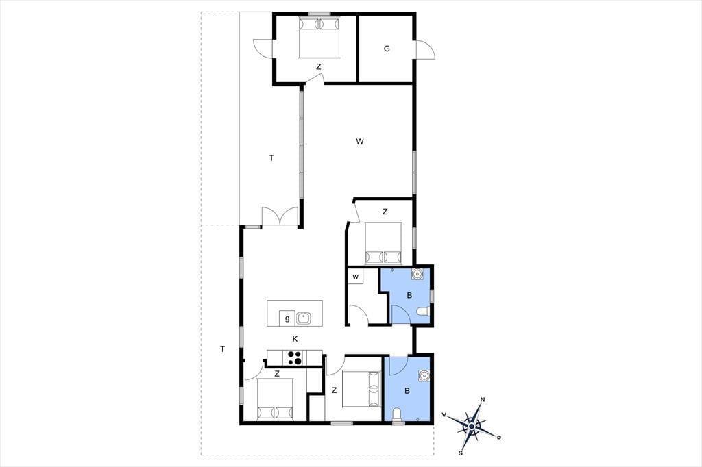 Sommerhusets 119 m2 er blandt andet fordelt på to badeværelser og fire soveværelser, hvoraf sidstnævnte i alt har sengepladser til otte personer. Oveni kommer et lille vaskerum og en stor stue med integreret køkkenafdeling, så kort fortalt er der taget højde for de praktiske forhold og sociale stunder såvel som den gode nattesøvn. Som det kan forventes af et nyt kvalitetsbyggeri præsenterer alle rum sig på lys og lækker vis, og særligt stuen gør sig ekstra bemærket med sit flotte, åbne rumforløb, sin stilfulde indretning og de store vinduer, der inviterer masser af dagslys indenfor.