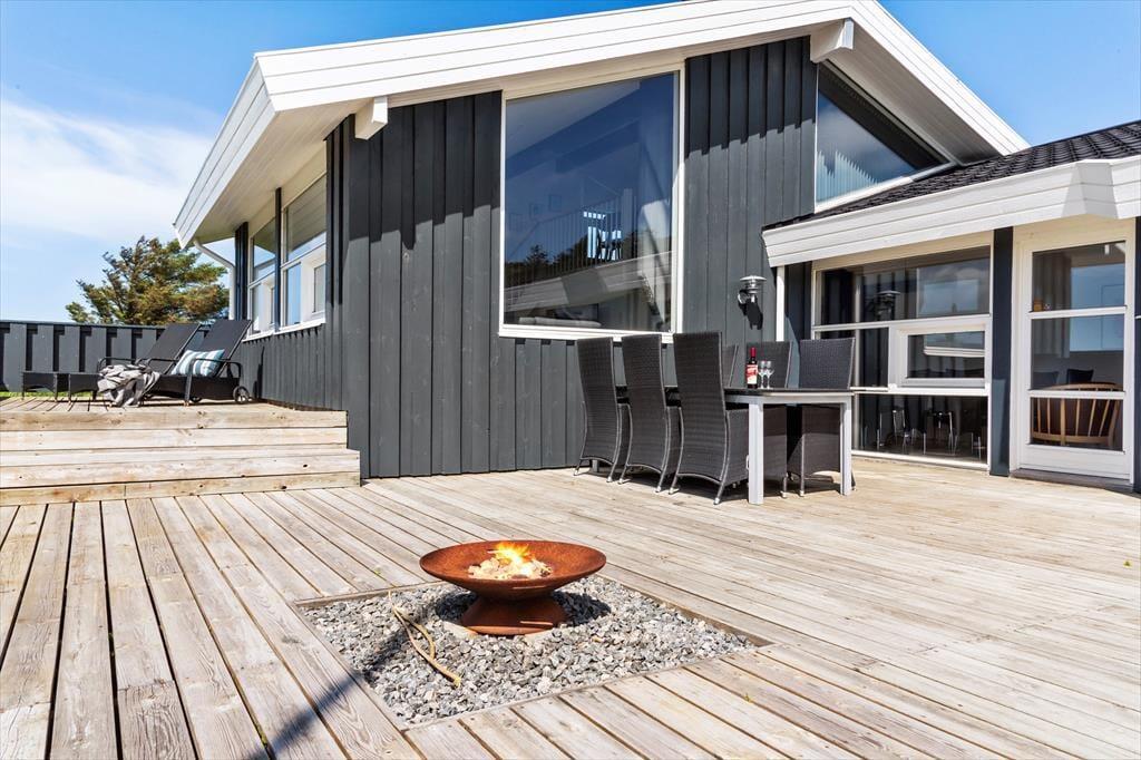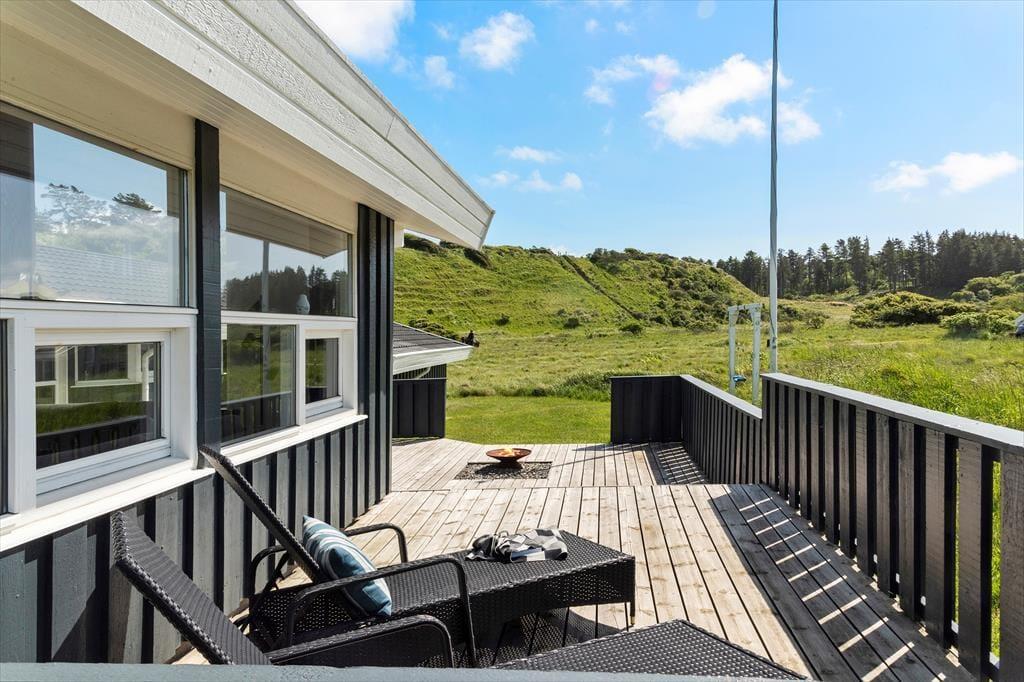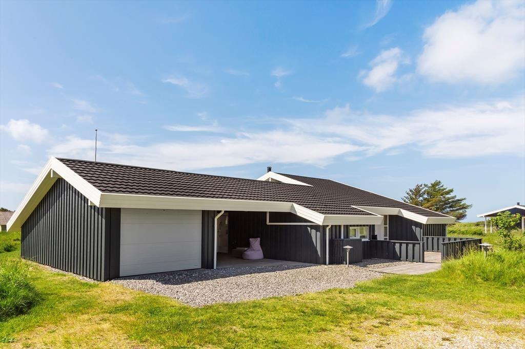 Det smukke landskab med de høje indlandsklitter har du også frit udsyn til fra terrassemiljøet, der breder sig rundt om huset. Der er flere åbne og delvist afskærmede opholdspladser at vælge imellem, og mellem huset og garagen ligger en rigtig fin overdækket terrasse, hvis du er på udkig efter en krog med læ og skygge – eller ly om aftenen, når duggen falder. I garagen er der både bordtennisbord og dart, så her er der mulighed for, at du og familien kan hygge jer med langstrakte turneringer eller blot et hurtigt spil.