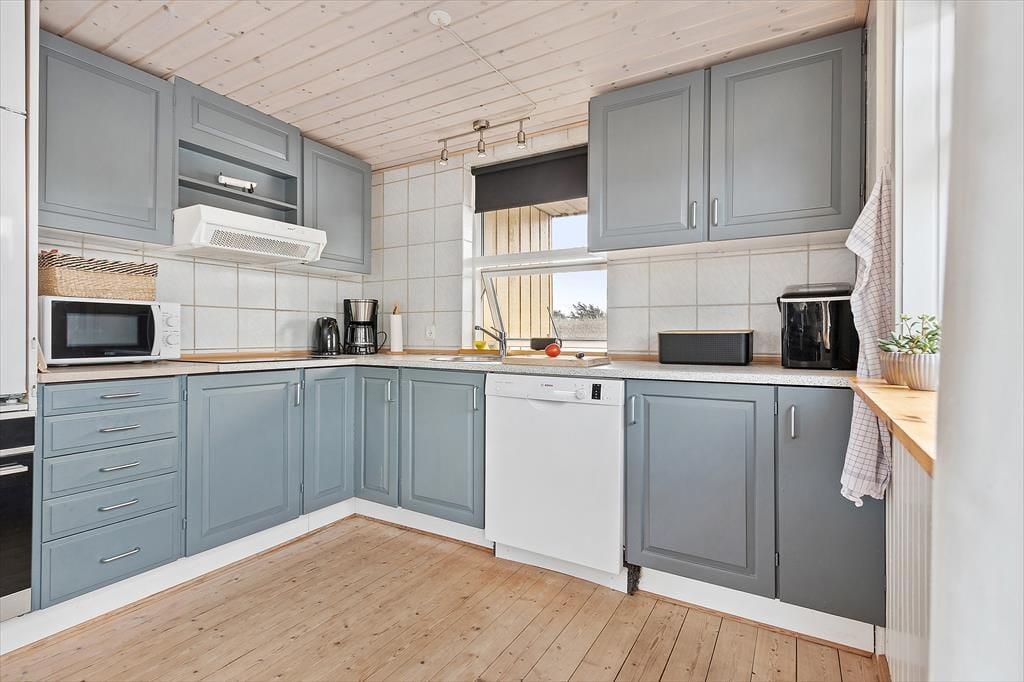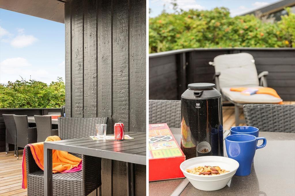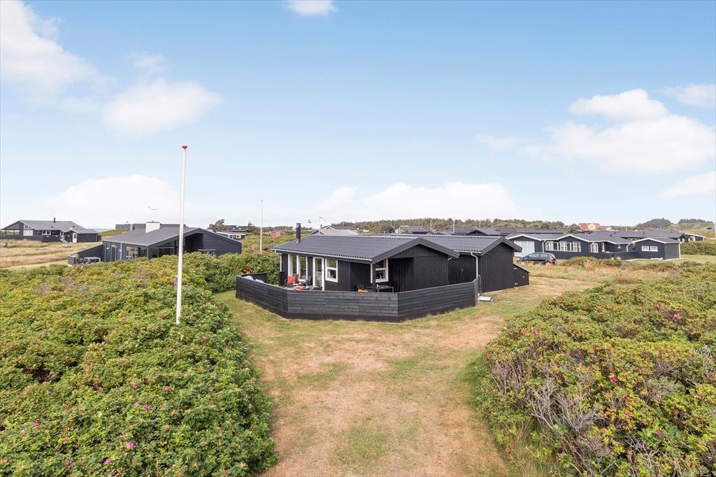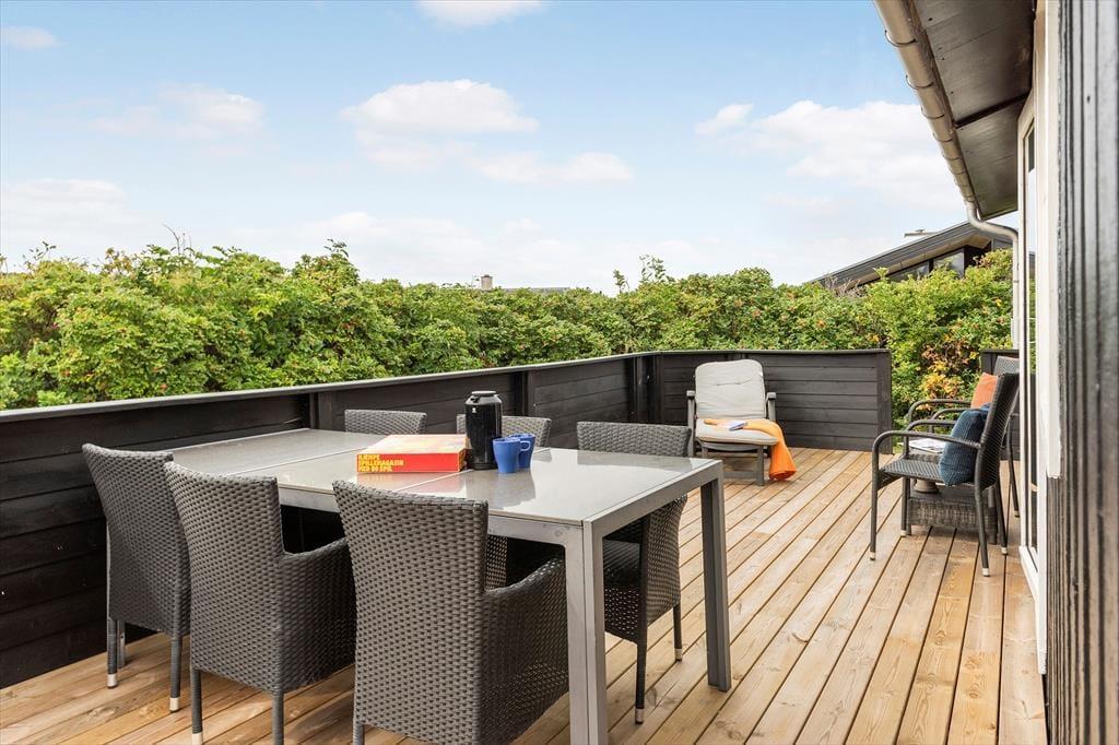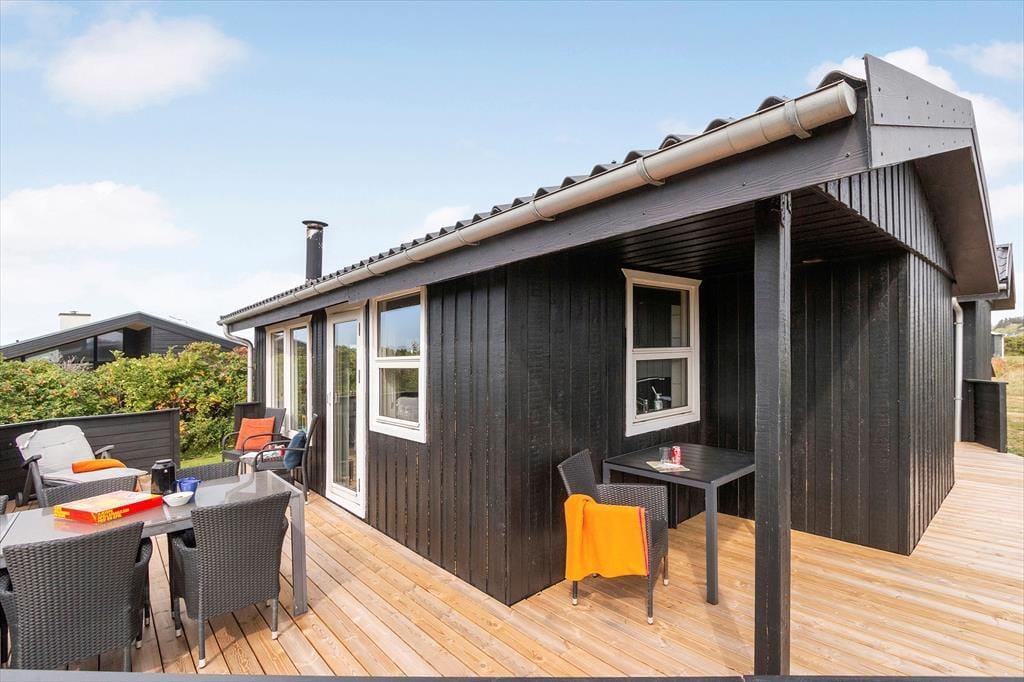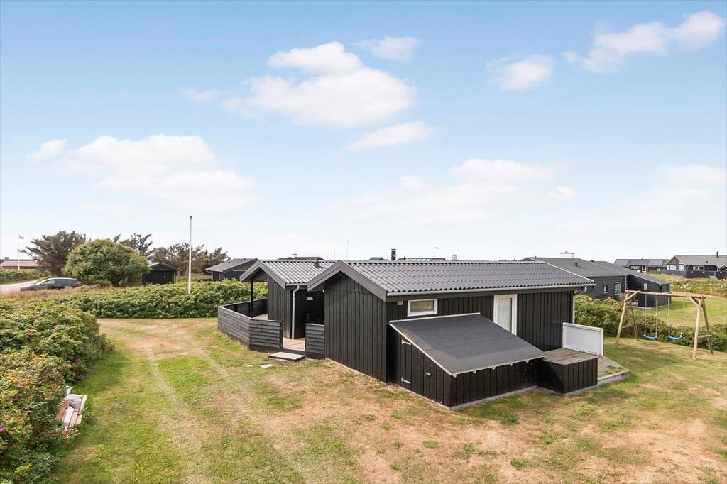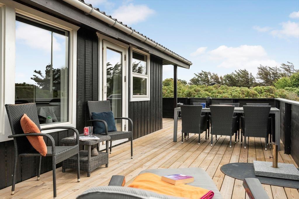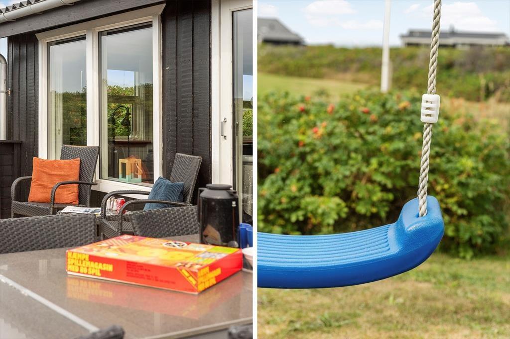 Hvis en sommerhusferie rimer på solbadning og havespil for dig, er det skønt at have en god terrasse og en stor grund til rådighed. Og det har du her på Sommervej 14, for rundt om huset er der flere dejlige terrasseområder og en græsplæne omgivet af duftende hybenbuske. Den største terrasse er helt aflukket, så familiens hund eller de yngste medlemmer kan lege i trygge rammer – når I altså ikke tumler sammen i det grønne med fangeleg, frisbee og boldspil. Og når dagen går på hæld, kan du starte grillen, sætte dig godt til rette i havestolen og nyde områdets fredelige atmosfære, måske endda med lyden af Vesterhavets bølger i baggrunden.