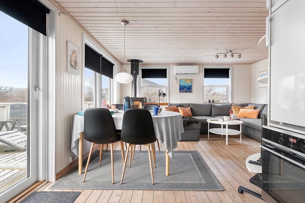 Hvis du trænger til at tage feriedagene i helt roligt tempo, kan du glæde dig til at slappe af i husets hyggelige omgivelser. En stilfærdig pause i badeværelsets sauna er måske lige det, du har brug for, og der er også rig mulighed for at sove godt og længe på de tre soveværelser. De fleste af døgnets vågne timer kommer nok til at udspille sig i stuen, hvor du kan slænge dig i sofaen med en spændende bog eller udfordre familien i Scrabble eller kortspil. Brændeovnen kan tages i brug, hvis det er køligt udenfor, og når det er ved at være spisetid, er det rart at stå og kokkerere i det veludstyrede åbne køkken.