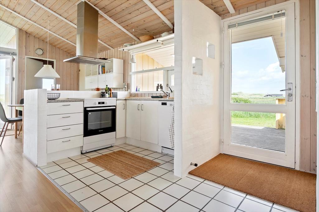 Når du træder indenfor, kan du straks føle dig hjemme i de kønne og stemningsfulde rum. Den åbne forbindelse mellem stue og køkken sørger for, at du og dine kære har god plads til at være sammen, uanset om I hygger jer med madlavningen eller sidder med brætspil og gode bøger nær den knitrende brændeovn. I løbet af dagen inviteres solen ind i opholdsrummet fra tre verdenshjørner, og vinduerne giver udsigt til de naturskønne omgivelser. Også fra et af de tre soveværelser kan du se lige ud på Nørlev Strands klitrække, når du slår øjnene op om morgenen.