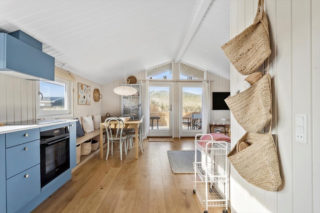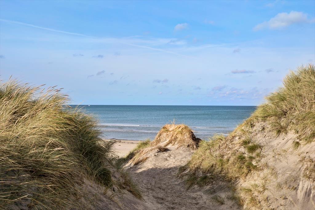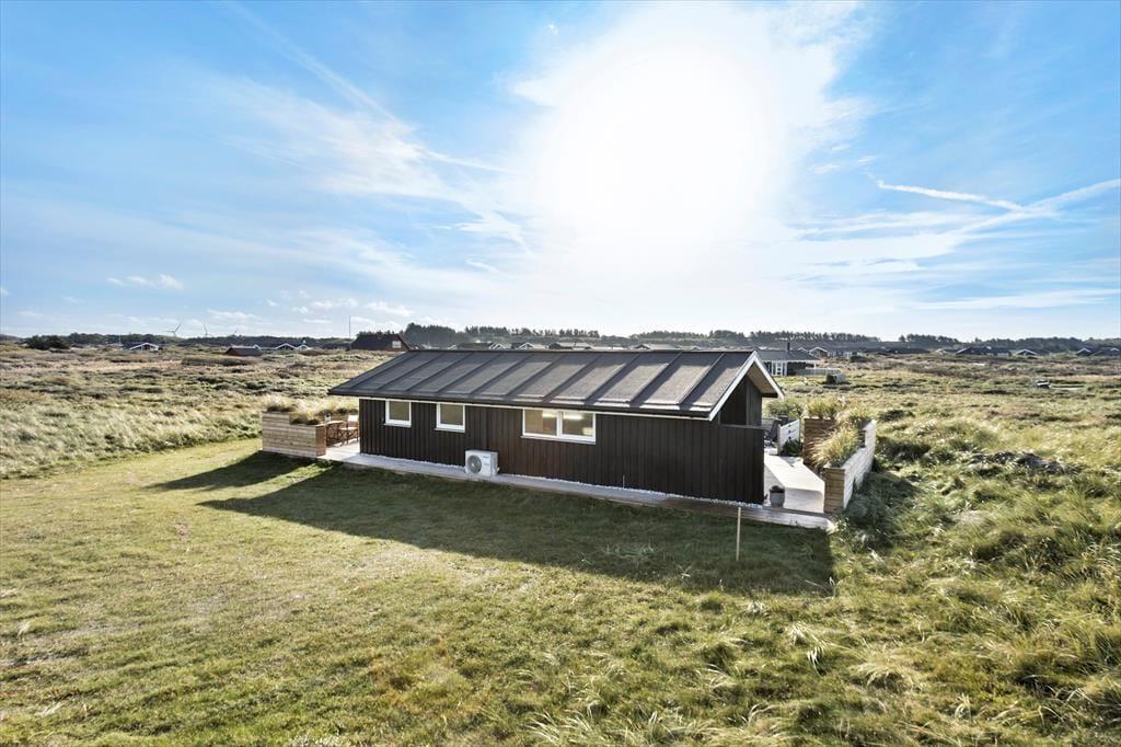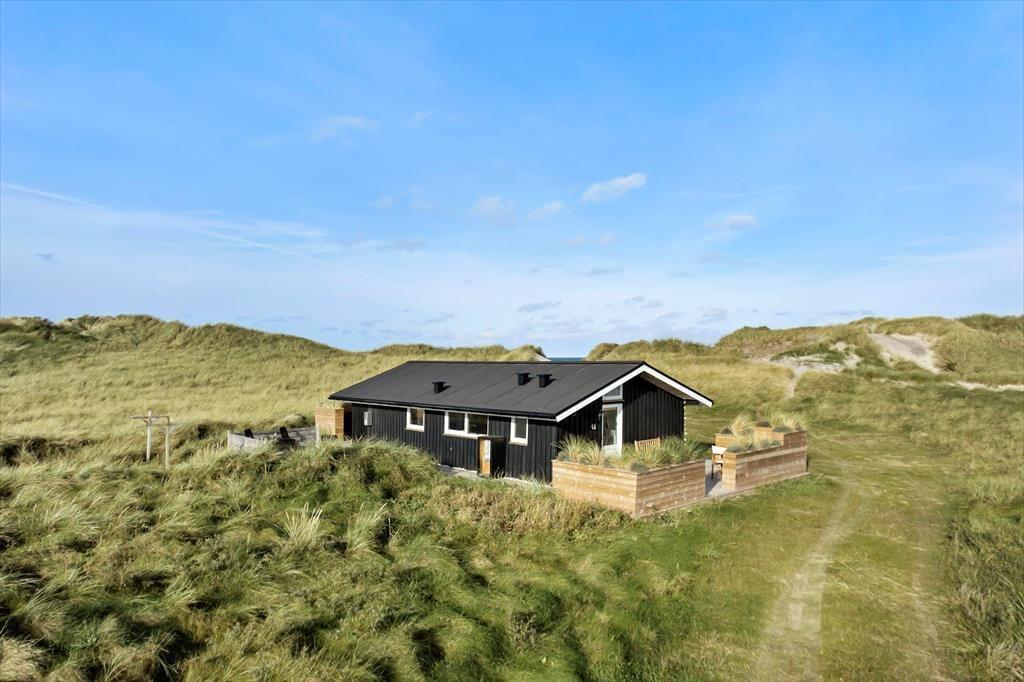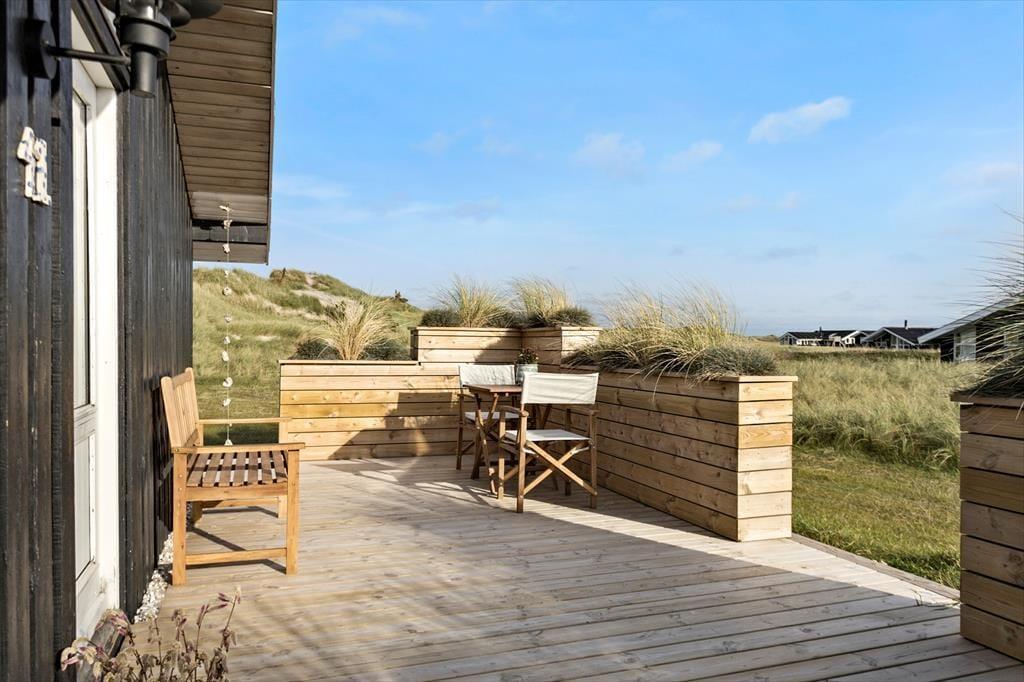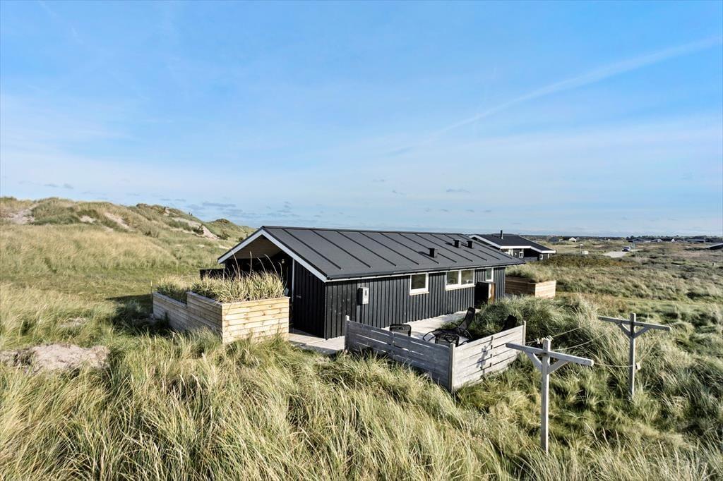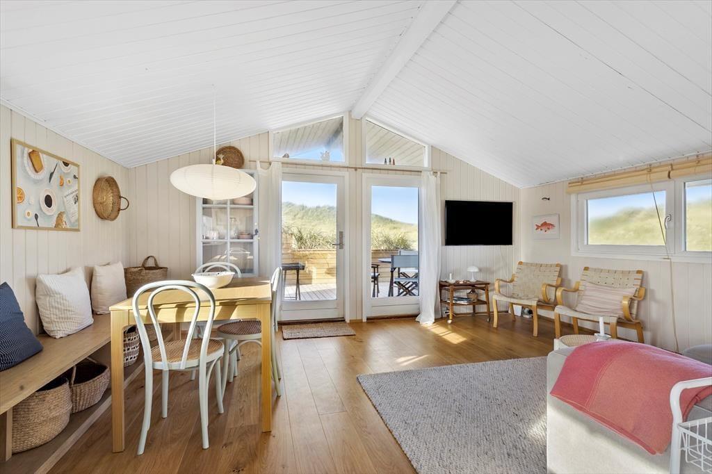 Udendørs er huset mindst lige så indbydende. Den store terrasse strækker sig langs huset og byder både på åbne solpletter og en dejlig overdækket del, hvor du kan sidde i læ med en kop kaffe, selv når vestenvinden rusker i klittoppene. De gode havemøbler inviterer til lange frokoster under åben himmel og afslappende timer med en bog eller et glas vin i hånden. Mågerne kredser over klitterne, vinden hvisker i marehalmen, og der er noget helt særligt ved at mærke solen varme, mens du lytter til Vesterhavets evige brusen tæt på. Den korte gåtur til stranden gør det nemt at tage en hurtig dukkert eller nyde en lang gåtur i vandkanten, når solen er ved at gå ned. Her er det nemt at finde sin yndlingsplads og bare være – i nuet og naturen.